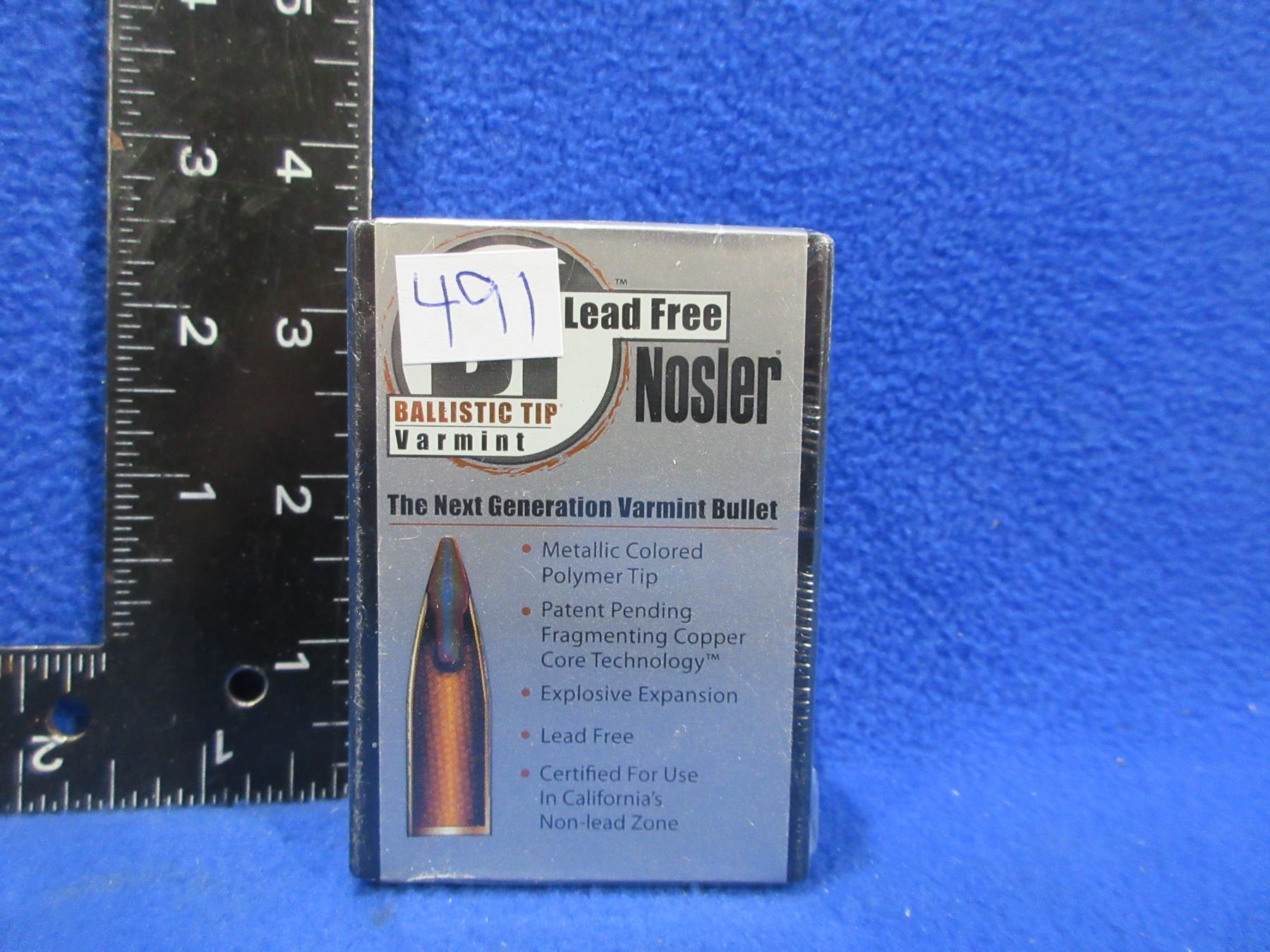 Lot 491 22 Cal. .224" 35gr Spitzer Ballistic Tip Nosler Bullets - Sealed Box of 100