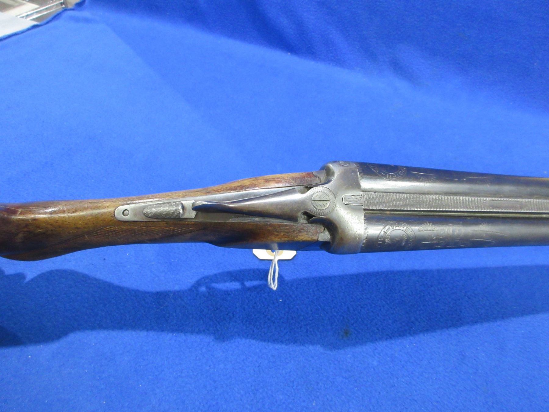 Non-Restricted - Vapen-Depoten Falun Special in 16 Ga. 2 1/2" - This is a tip up SXS shotgun, action is tight and appears to be in good working order. Barrels are 30", bores are good but left barrel has a small dent approx 8" from muzzle, bluing is good but worn above the forearm, has bead front sight, stock is good with many usage marks, forearm is good with many usage marks, length of pull is 14", butt plate missing, comes with rear swivel, front swivel missing. Ser # 47346