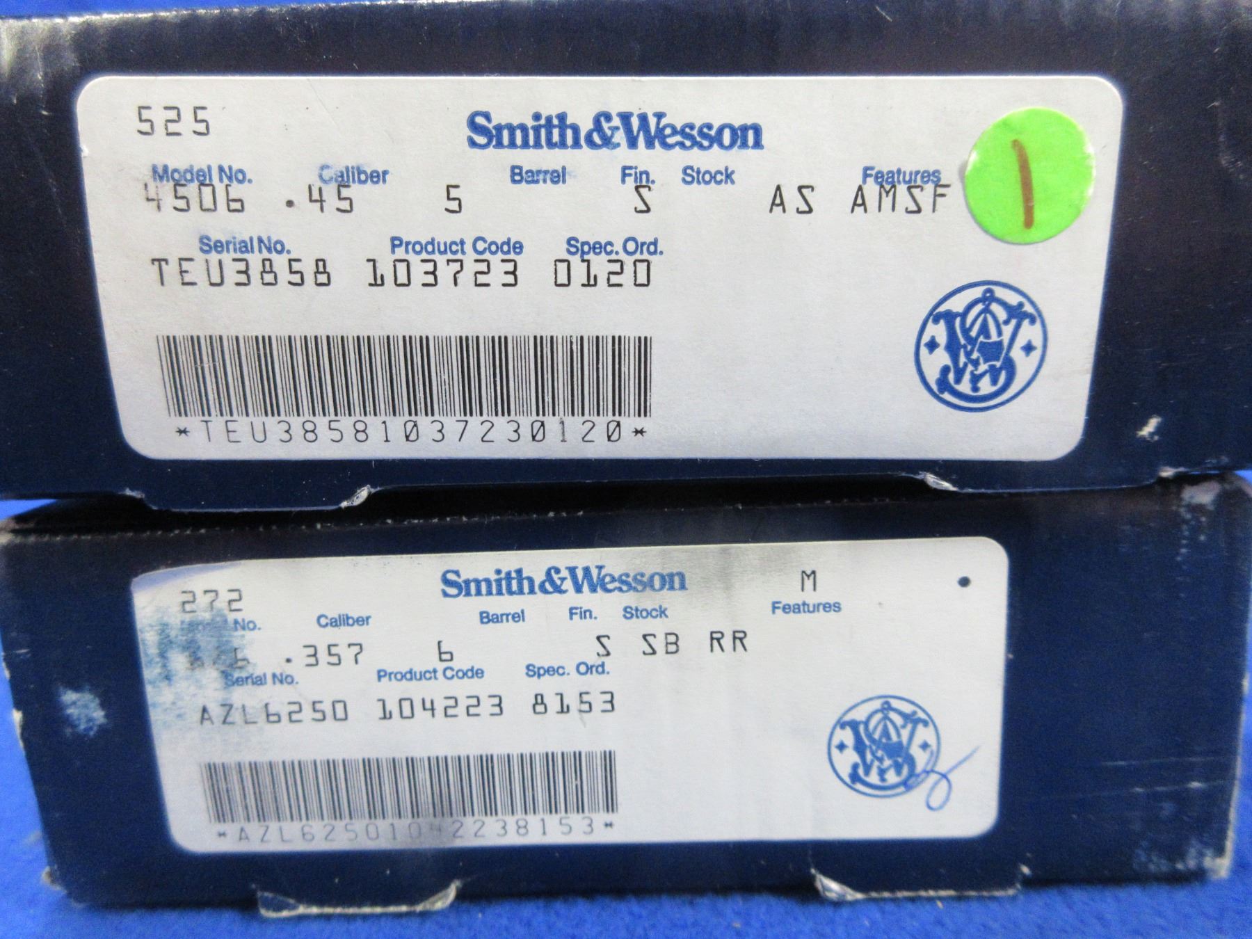 Lot 524 2 Smith & Wesson Empty Revolver Boxes - .357 and .45 Cal.
