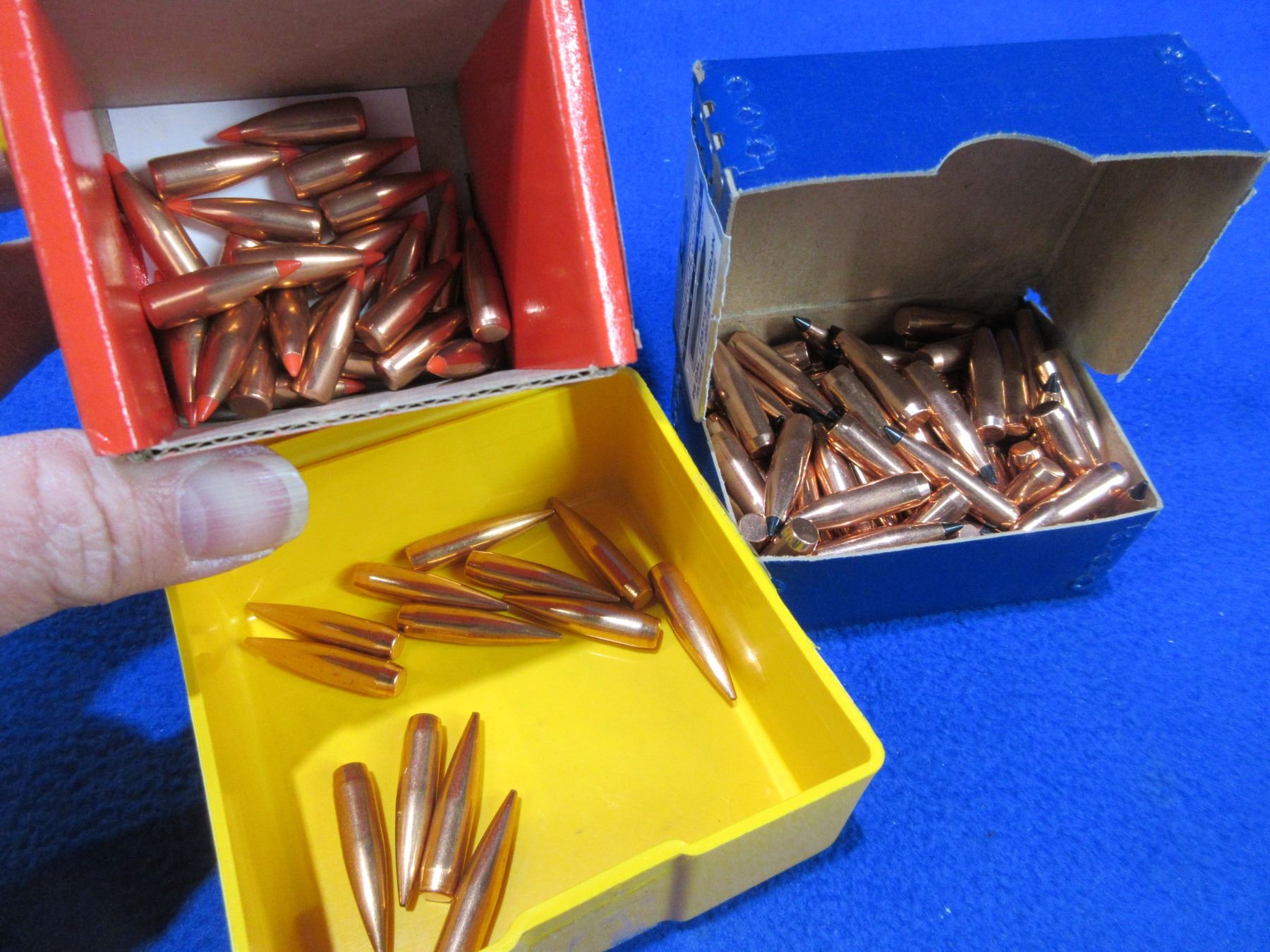 25 Cal. .257" Hornady, Swift and Berger Bullets - Box of 100 (Swift 100gr BT Spitzer), Box of 13 (Berger 115gr VLD), Box of 26 (Hornady 75gr V-Max)