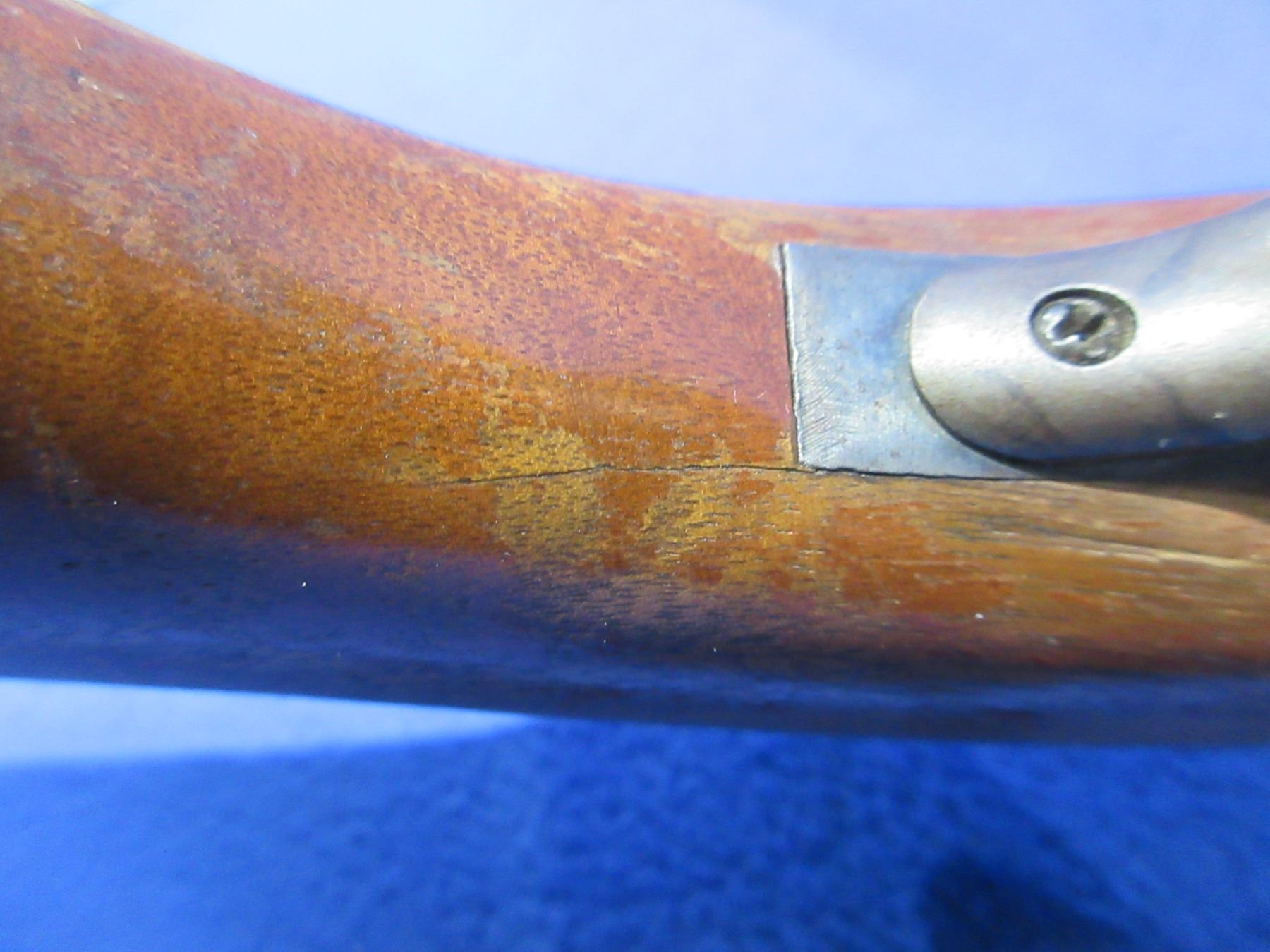 Non-Restricted - Hiawatha Single Shot in 12 Ga. 3" Full - This is a tip up single shot hammer shotgun, action is tight and appears to be in good working order. Barrel is 30", bore is good, bluing has rust and pitting, has bead front sight, stock has a hairline crack behind the bottom tang and drying crack at the butt, forearm is taped onto gun, length of pull is 14 1/4", butt plate good. Ser # 40175