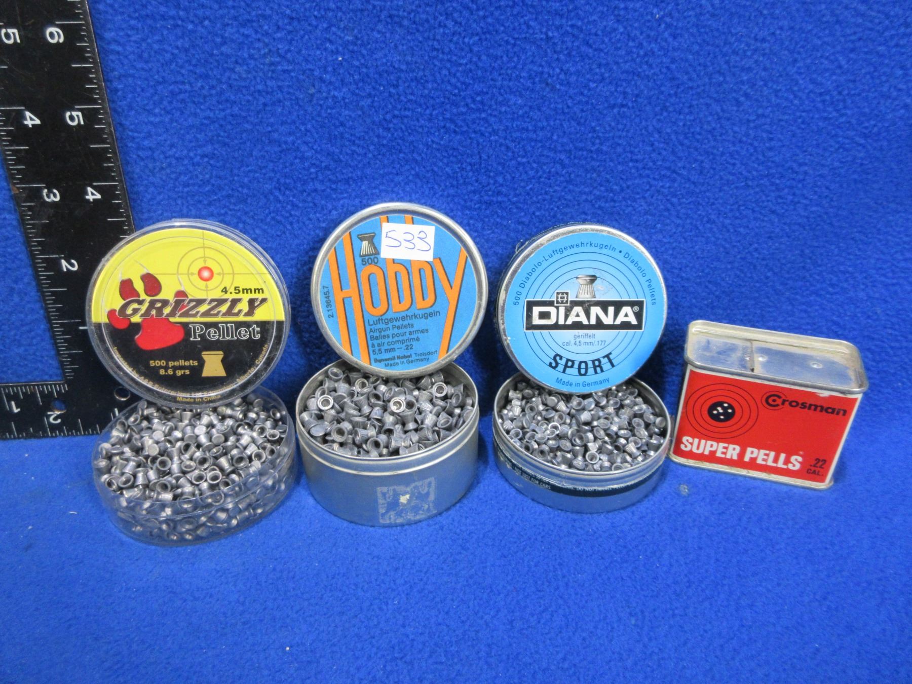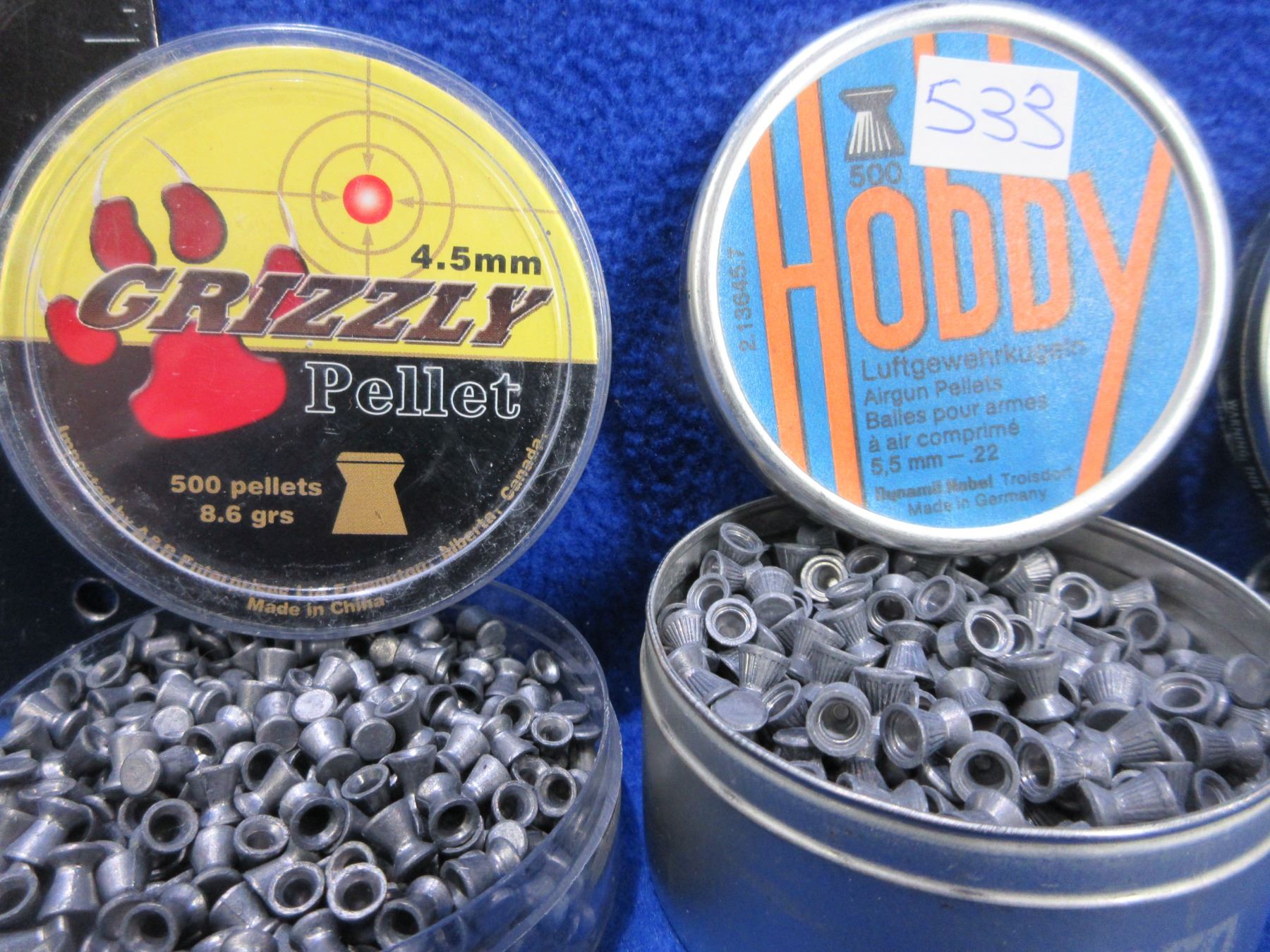 Lot 533 2 Tins of .177 Cal. and 2 Tins of .22 Cal. Pellets - All appear almost full