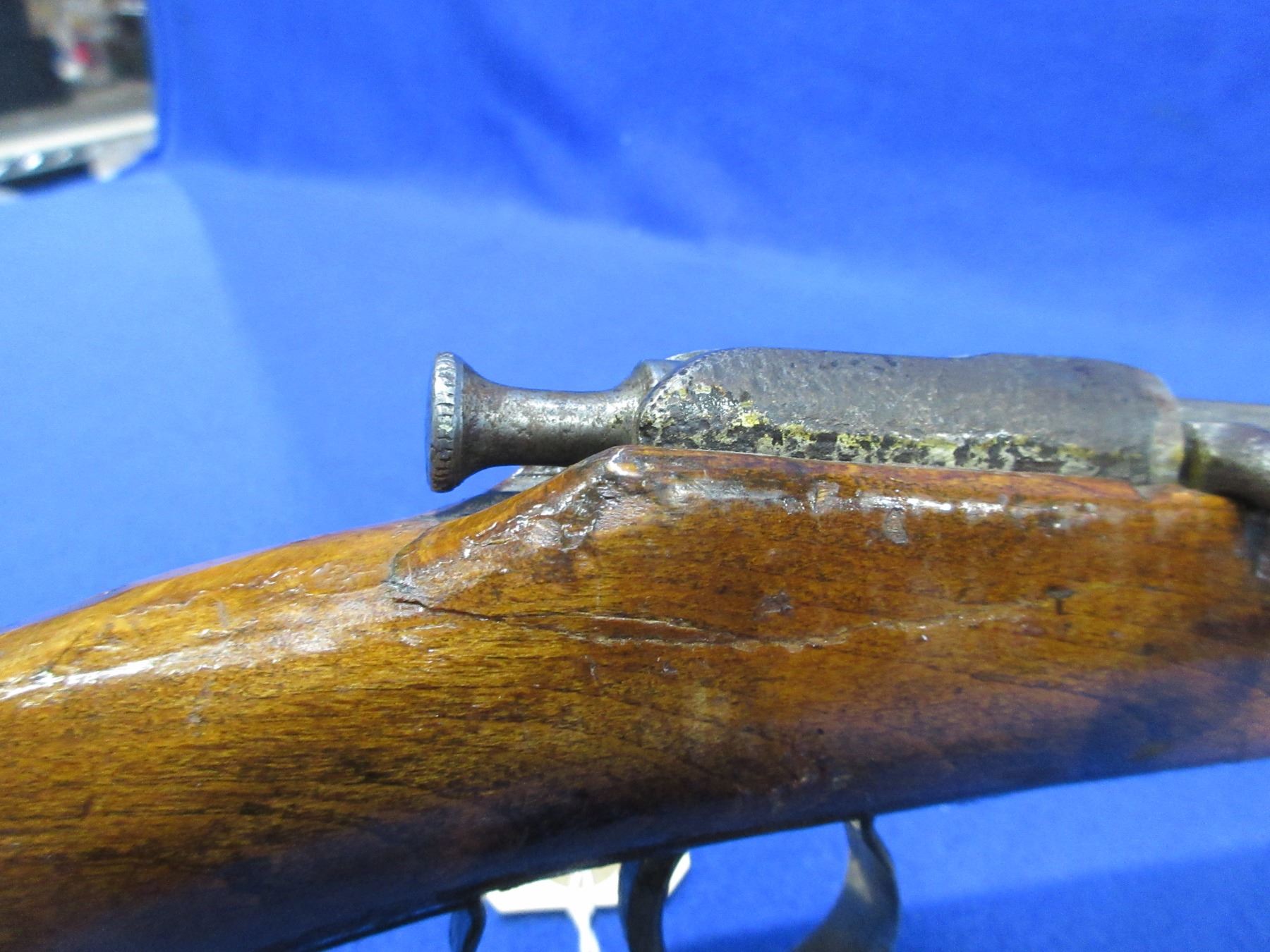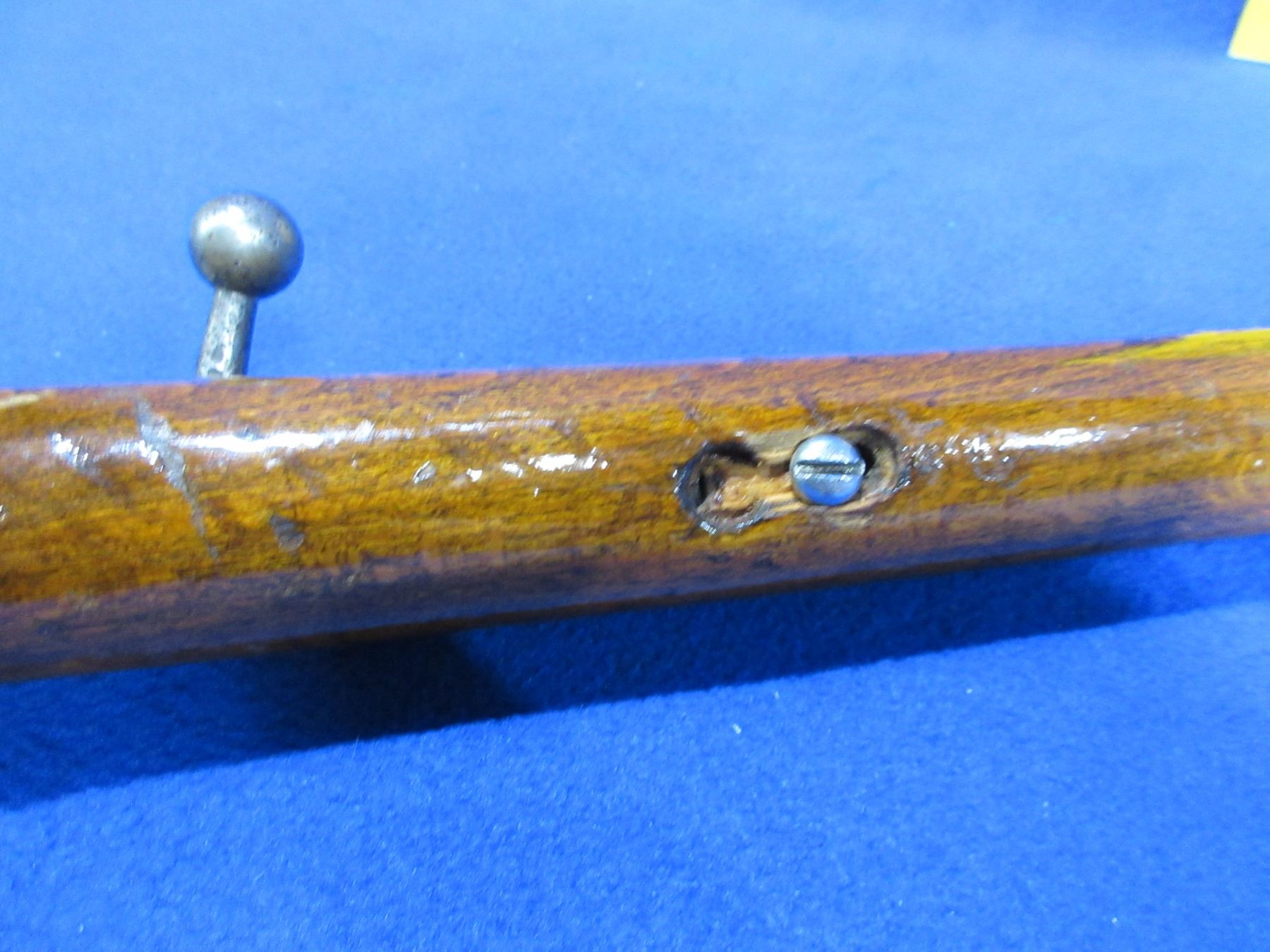 Non-Restricted - Tyskt German Rifle in 22 LR - This is a single shot bolt action rifle, action appears to be in working order but the sliding plate extractor is missing. Barrel is 19", rifling is poor, bluing is gone and barrel and action are badly pitted, has both sights, stock has a crack repair on the right side of action and is poorly refinished, length of pull is 14", swivel studs are missing. Ser # 1703-90