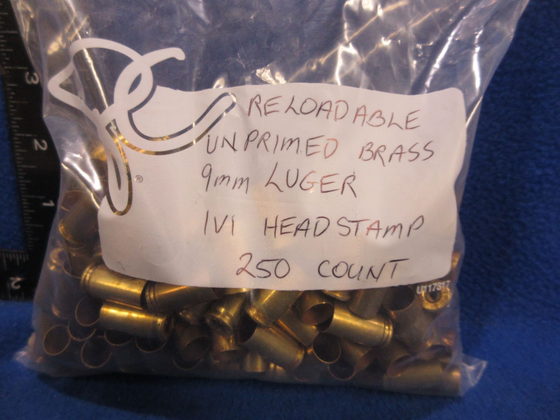 Lot 1046 Brass Only - 9MM Luger Deprimed IVI Headstamp - Bag of 250
