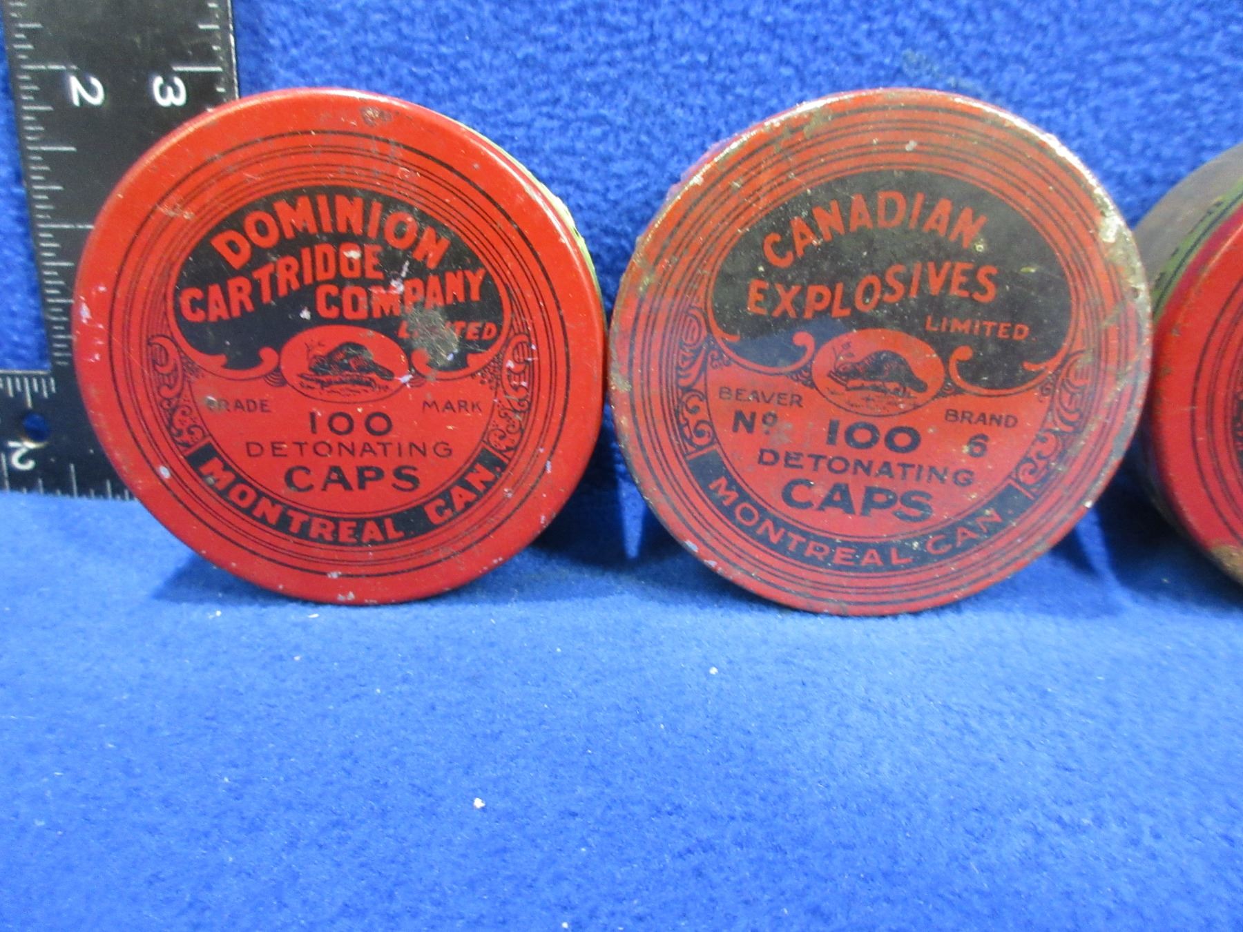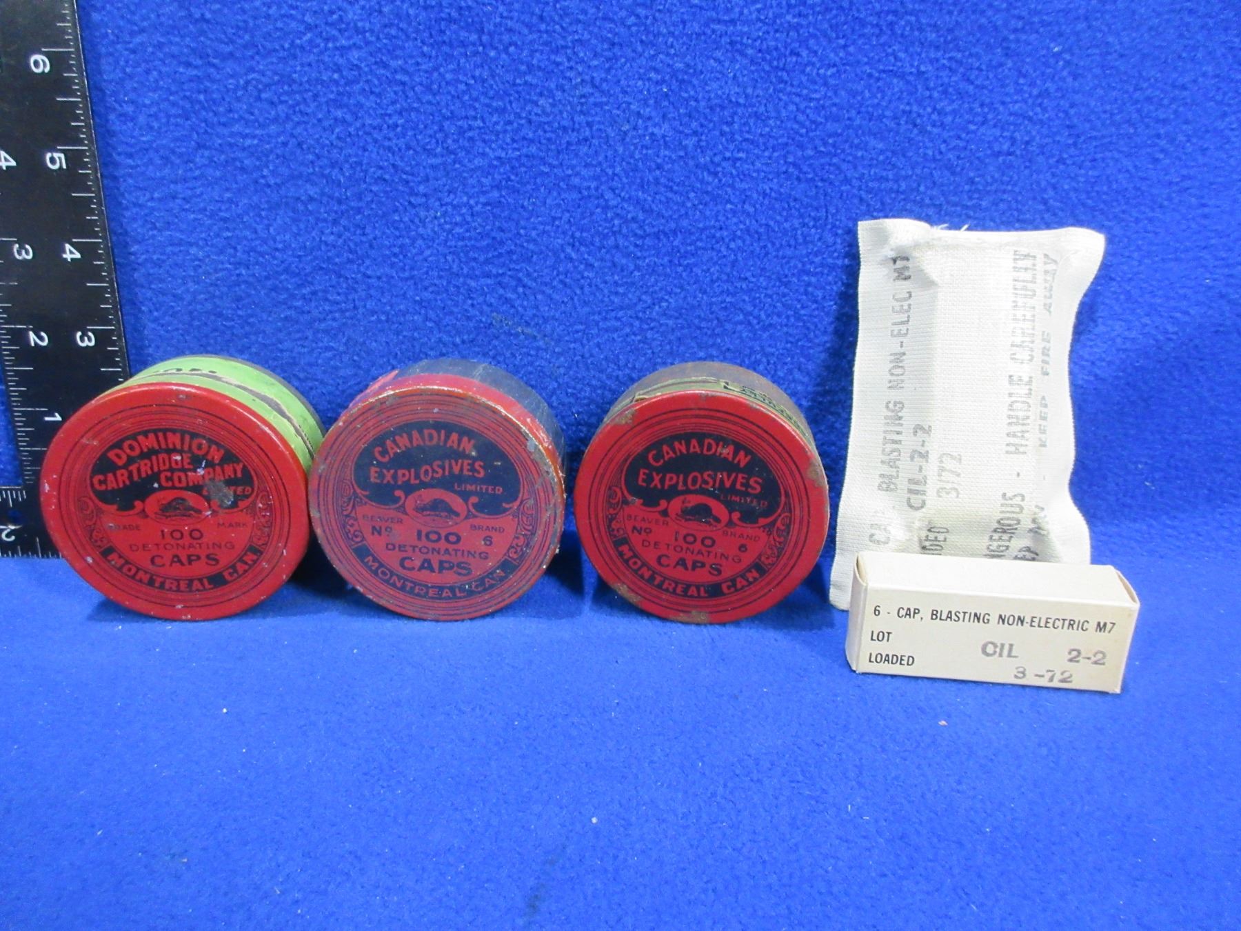 3 Empty Detonating Cap Tins and Empty Blasting Cap Box with Bag