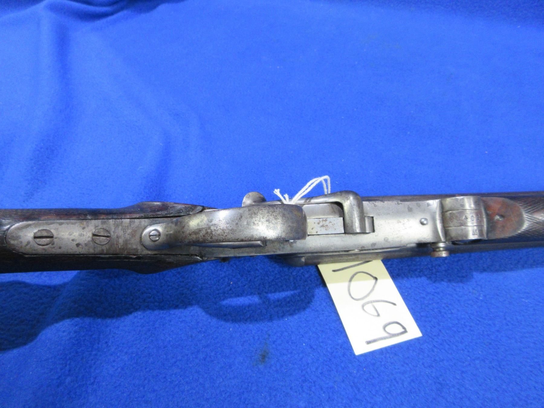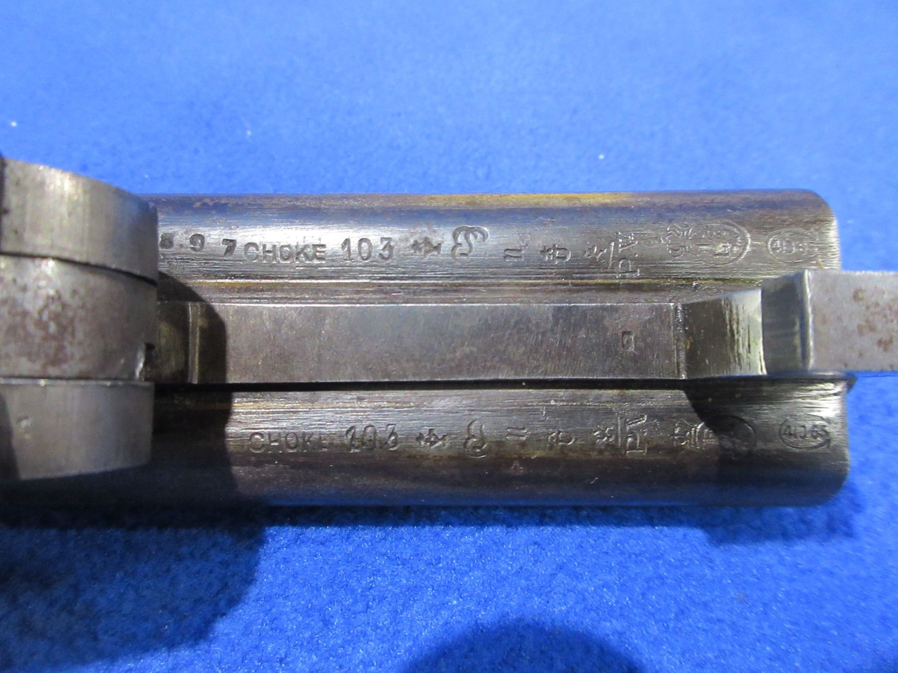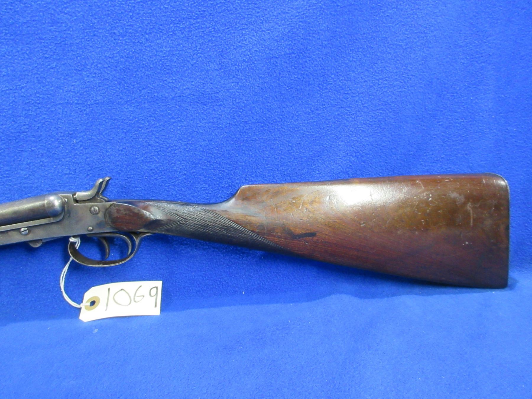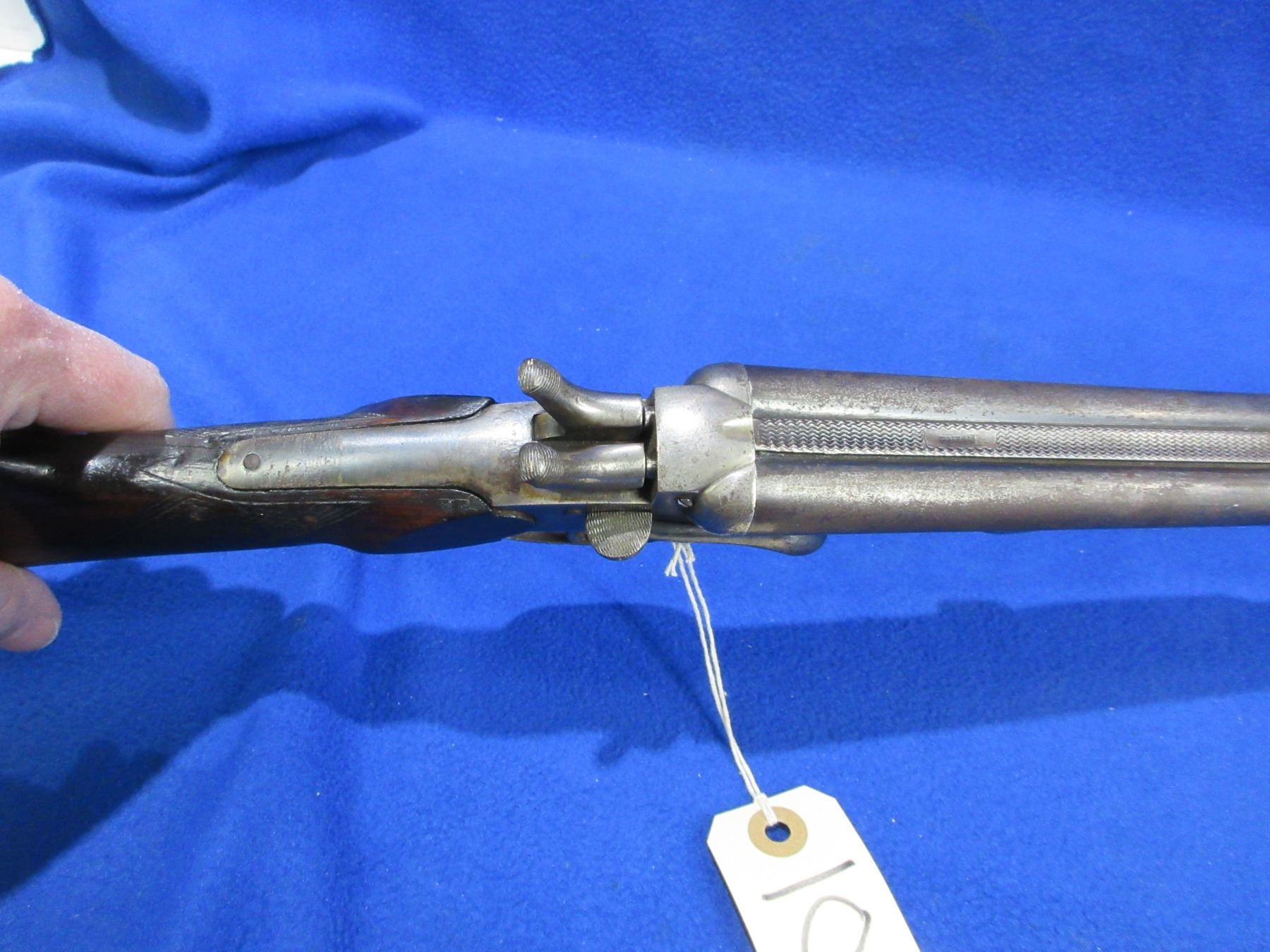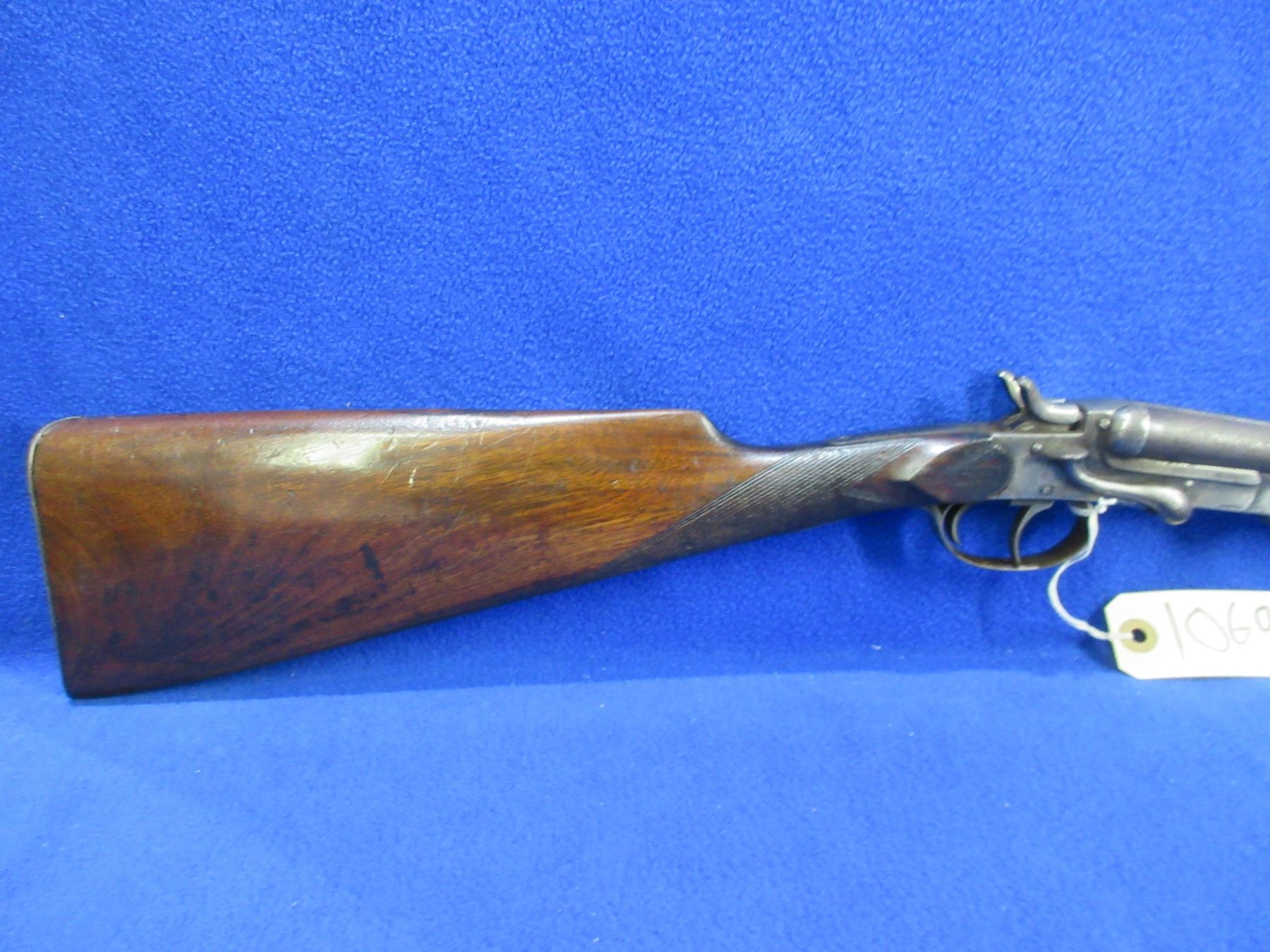 Non-Restricted - Leige Folding Game Keeper in 410 Ga. 2 1/2" - This is a tip up SXS hammer shotgun, action is tight and appears to be in good working order. Barrels are 27 1/2"", bores are fair to good, bluing is turning grey with light pitting, has bead front sight, stock has a crack behind the top tang, forearm is good, length of pull is 14 1/4", metal butt plate good. Ser # 402