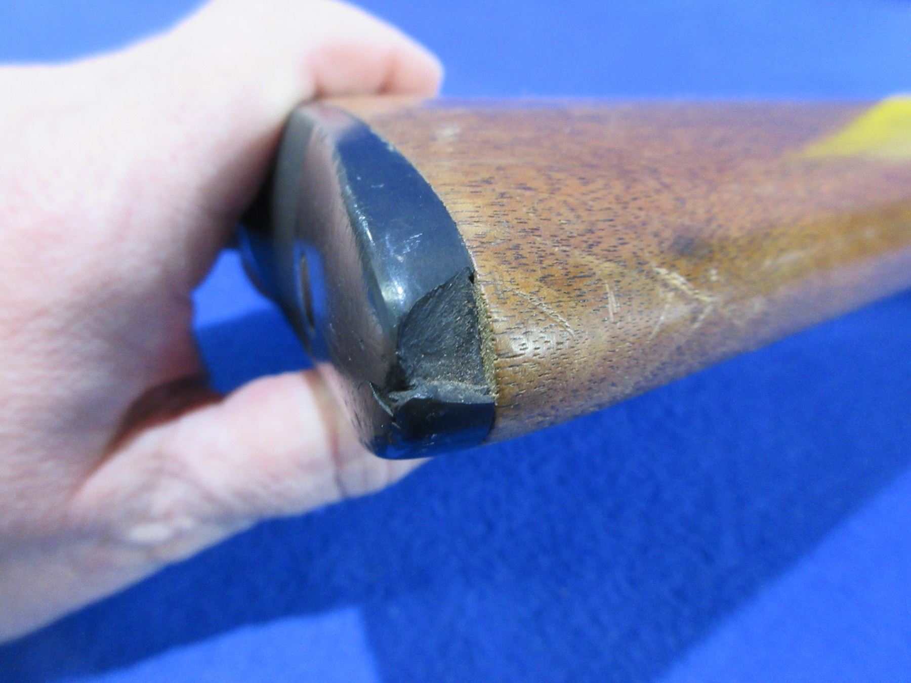 Non-Restricted - Savage Model 340 in 30-30 Win - This is a bolt action rifle with removable magazine, action appears to be in good to very good working order. Barrel is 22", rifling is good, bluing is good but starting to turn grey, has both sights, stock has a crack on top at the wrist area, length of pull is 13 3/4", butt plate good but has a small chip on the toe. Ser # None