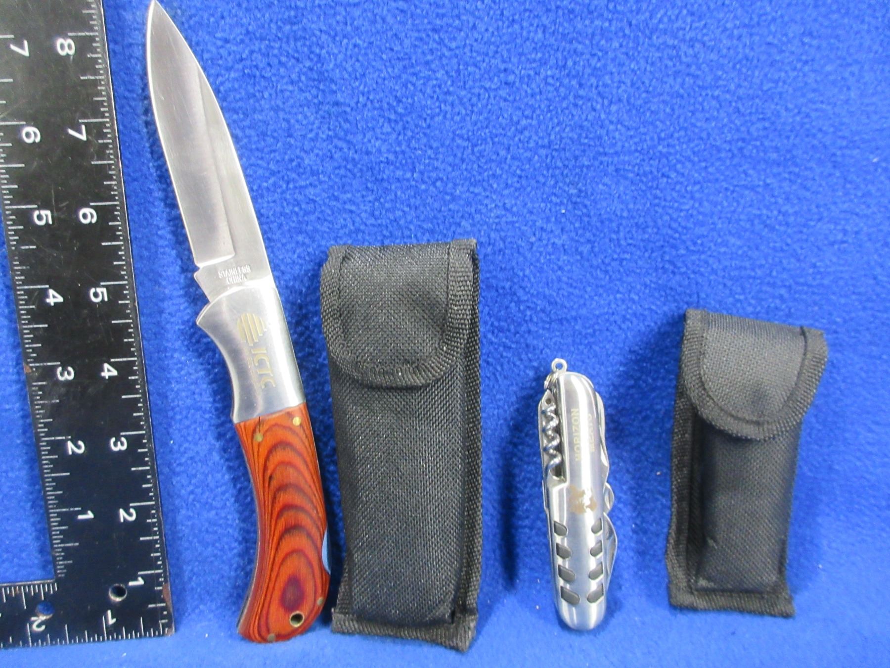 Lot 1088 Folding Blade Lock Knife & Swiss Style Knife with Sheaths