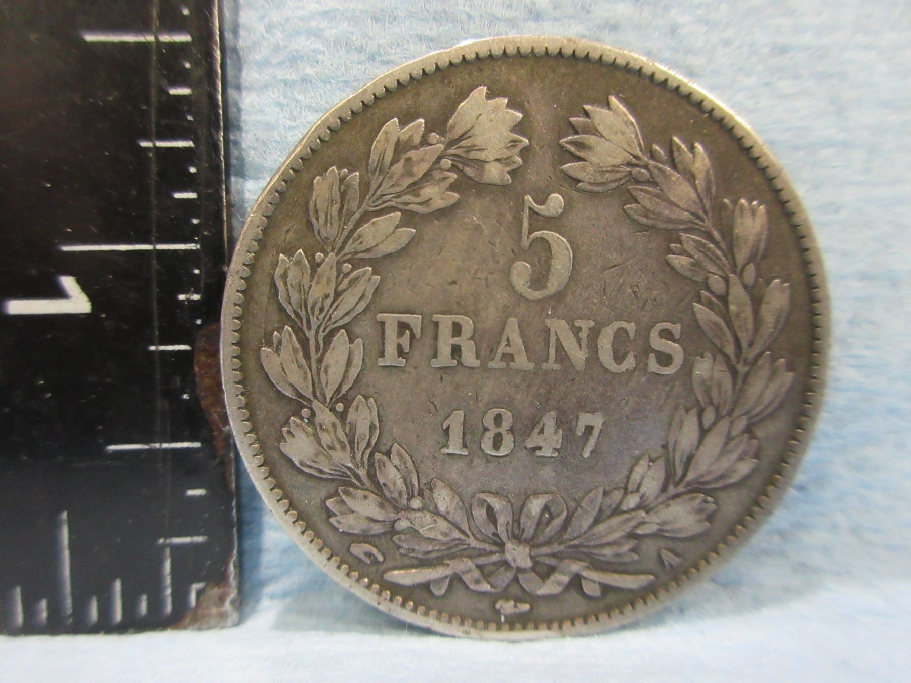 Lot 1093 1847 France 5 Francs Coin "Louis Philippe I" - .900 Silver