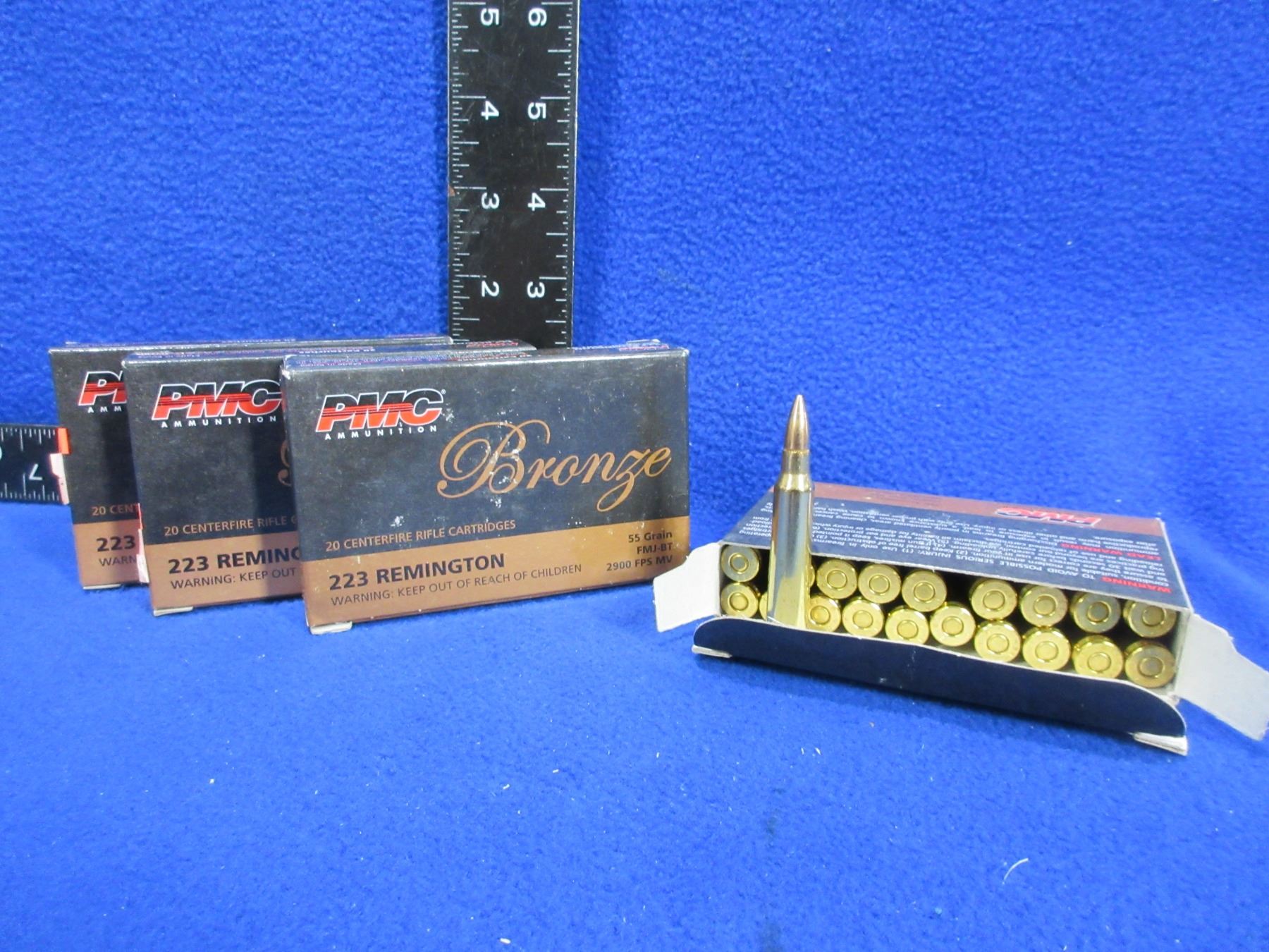 223 Rem. 55gr FMJ-BT PMC Bronze (Pick Up or Ship by UPS Only) Cartridges - 4 Boxes of 20