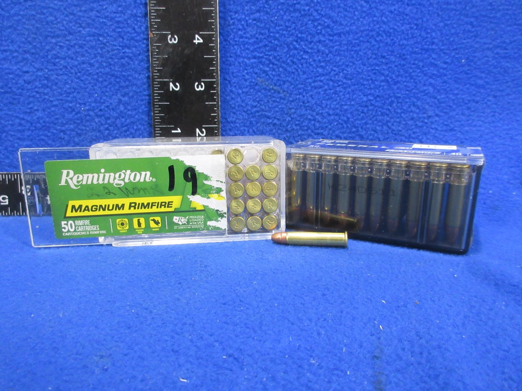 22 WMR Remington & Federal Cartridges (Pick Up or Ship by UPS Only) - Sealed Box of 50 (Federal 40gr FMJ), Box of 19 (Remington)