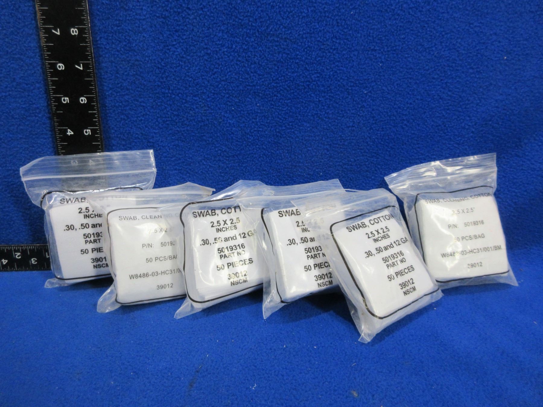 Lot 1132 NEW - Cotton Swabs - 2.5" x 2.5" - 6 Packs of 50