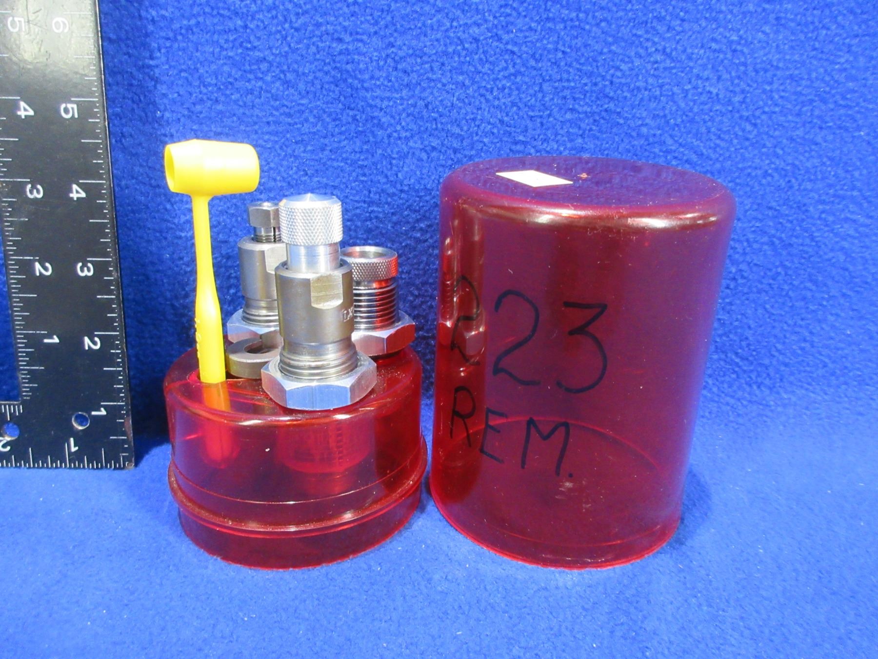 Lot 1143 Lee 223 Rem. 3 Die Set with Shell Holder # 4 & Powder Measure