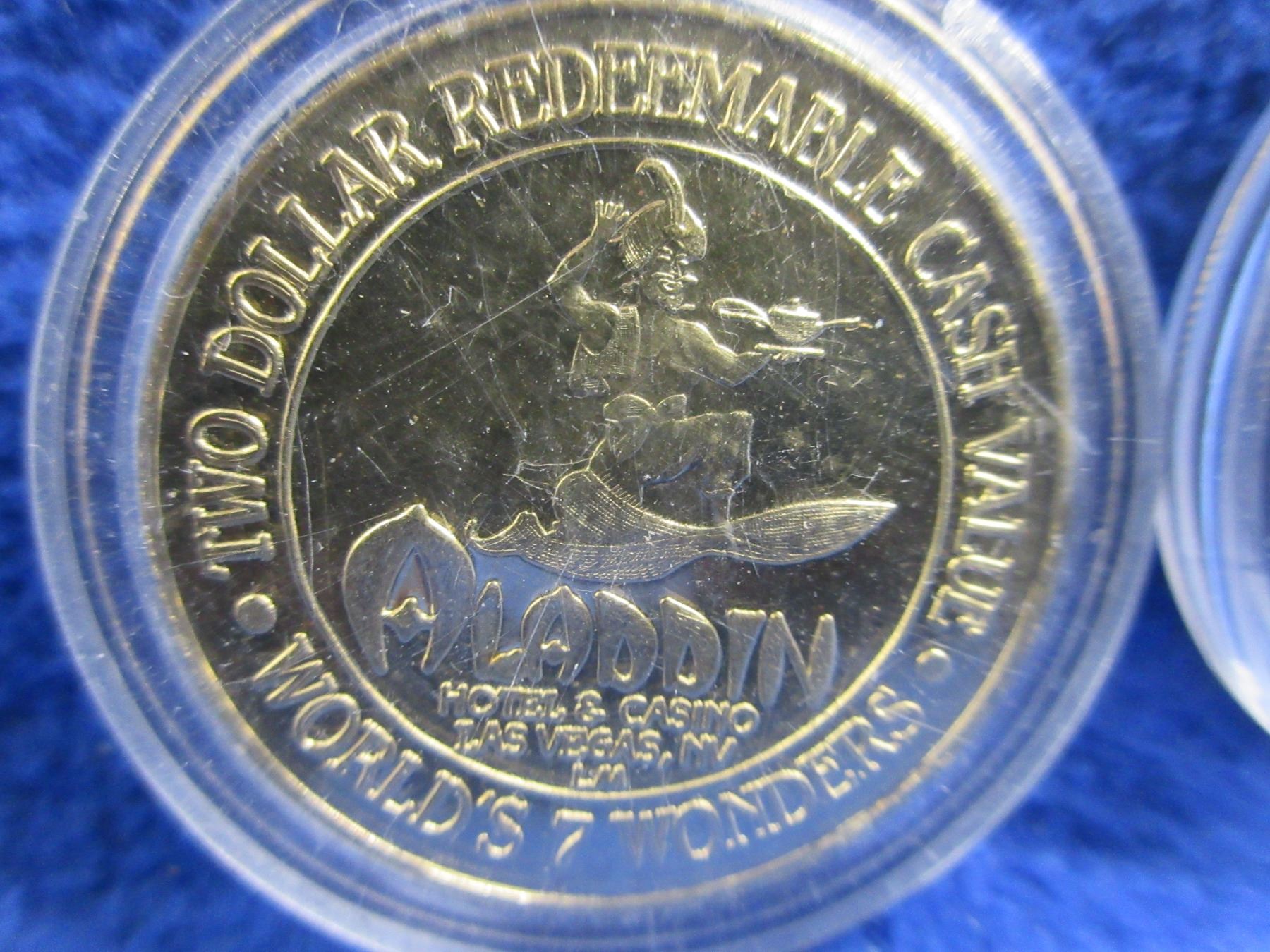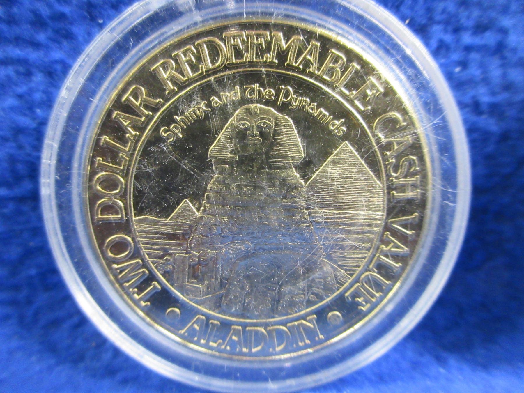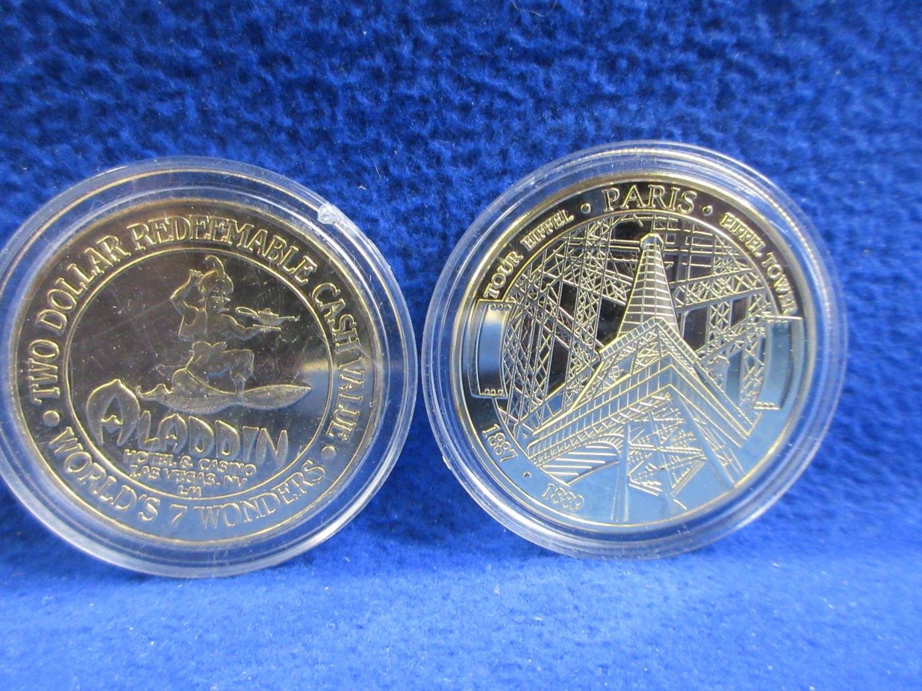 Lot 1198 Aladdin 2 Dollar Token with Sphinx & 1989 Paris, Las Vegas Eiffel Tower Coin