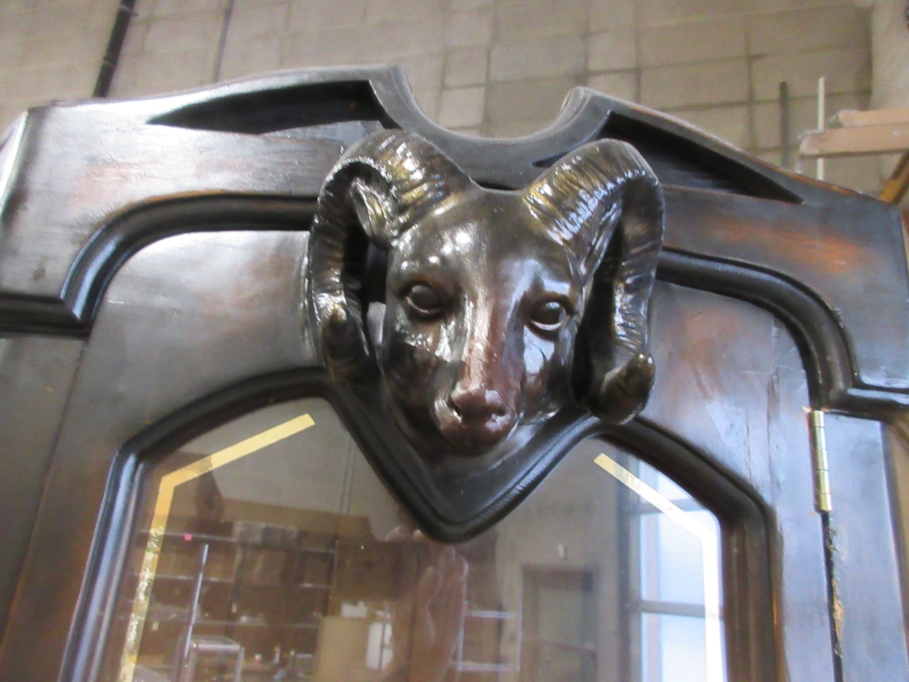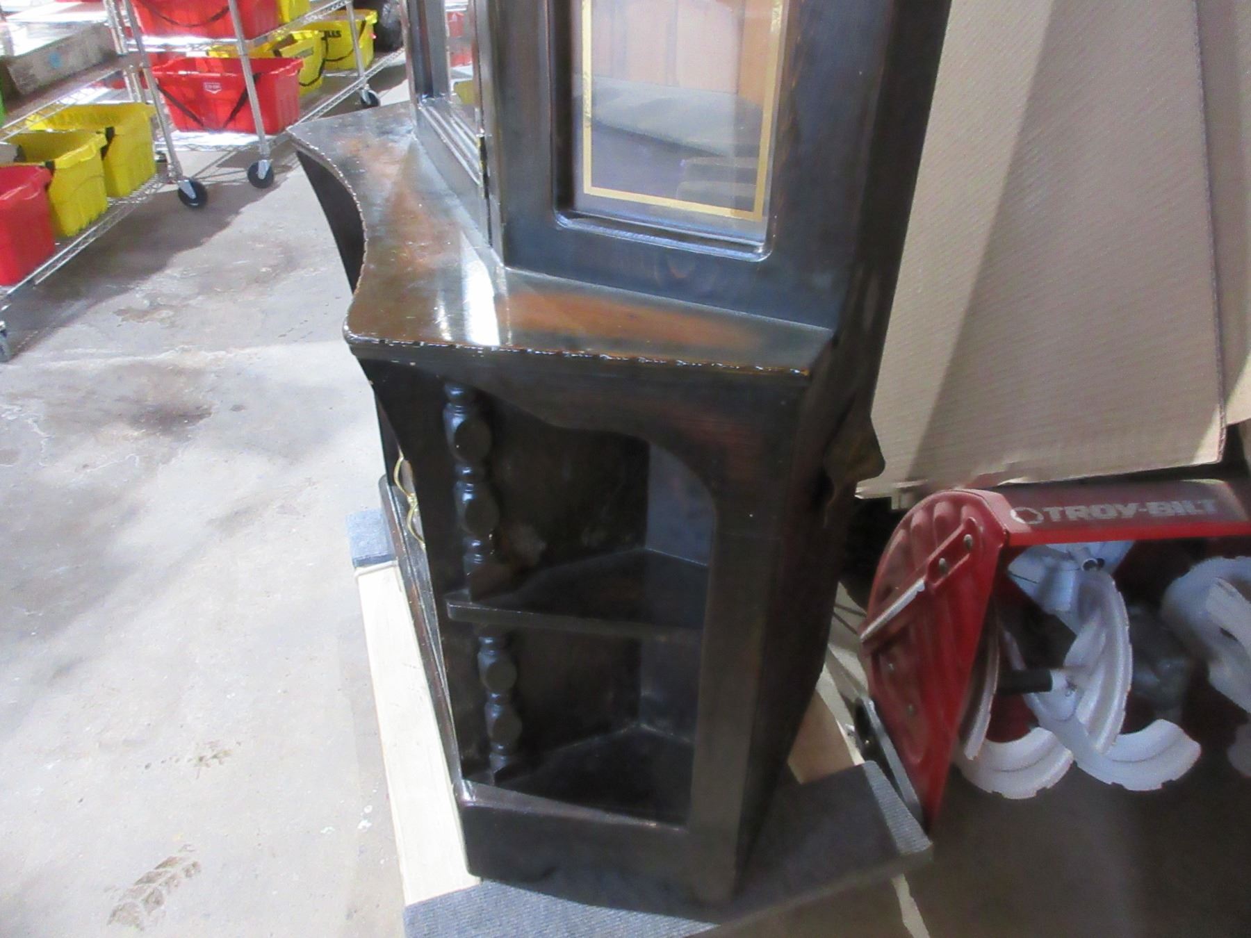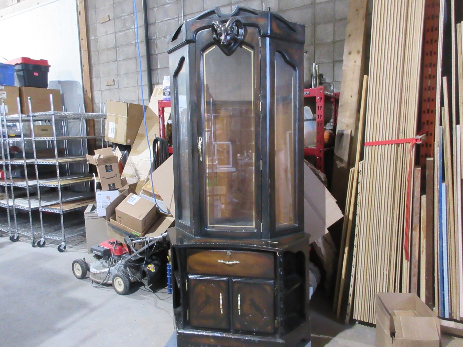 Lot 1202 Large Wood and Glass Gun Display Corner Cabinet - PICK UP ONLY