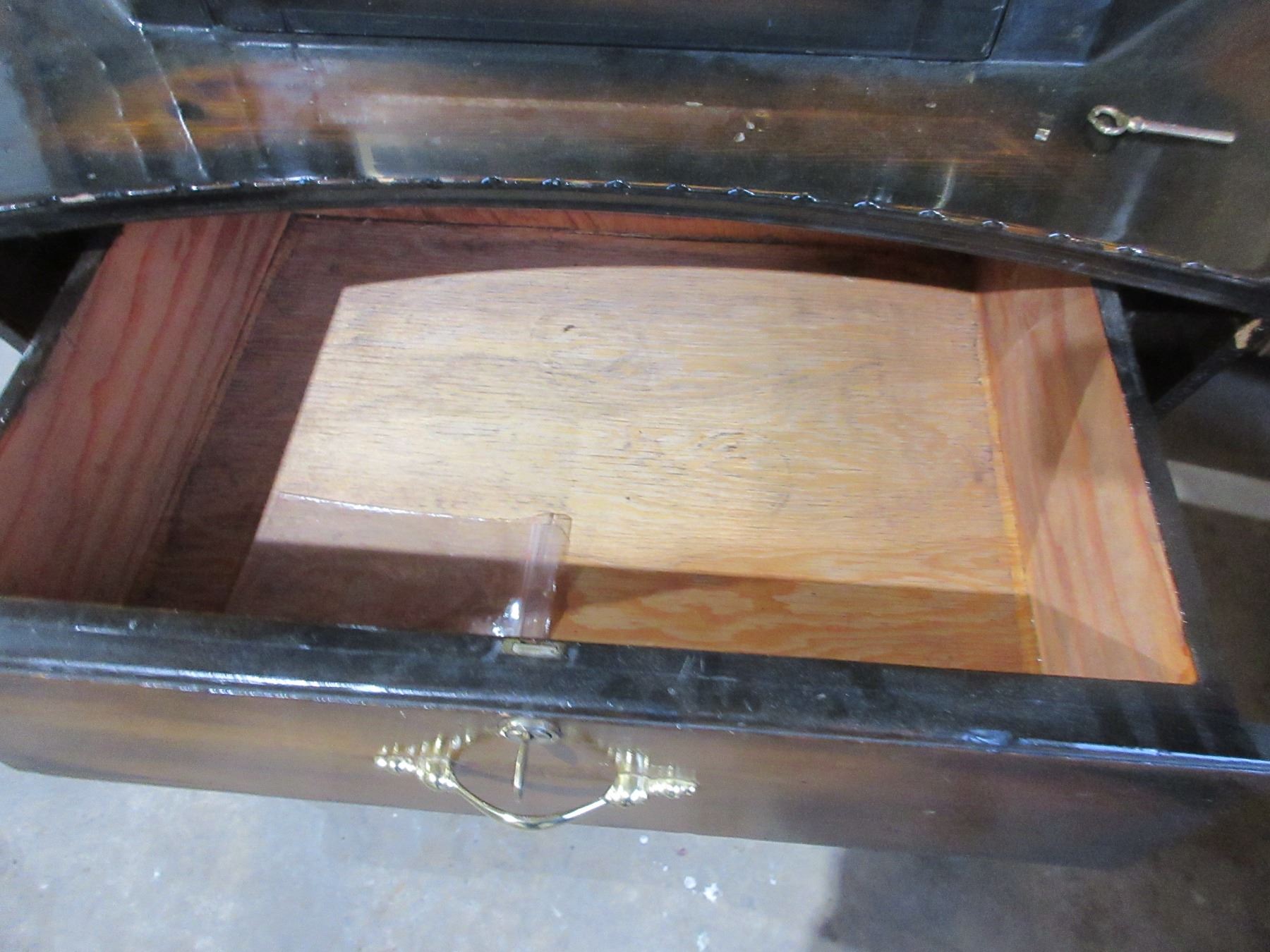 Large Wood and Glass Gun Display Corner Cabinet - PICK UP ONLY - Approx. 82" High x 37" Wide x 22" Deep - Top display case key is broken, bottom drawer key works. Back sides of case have 2 handles to help with moving, top and bottom does not separate
