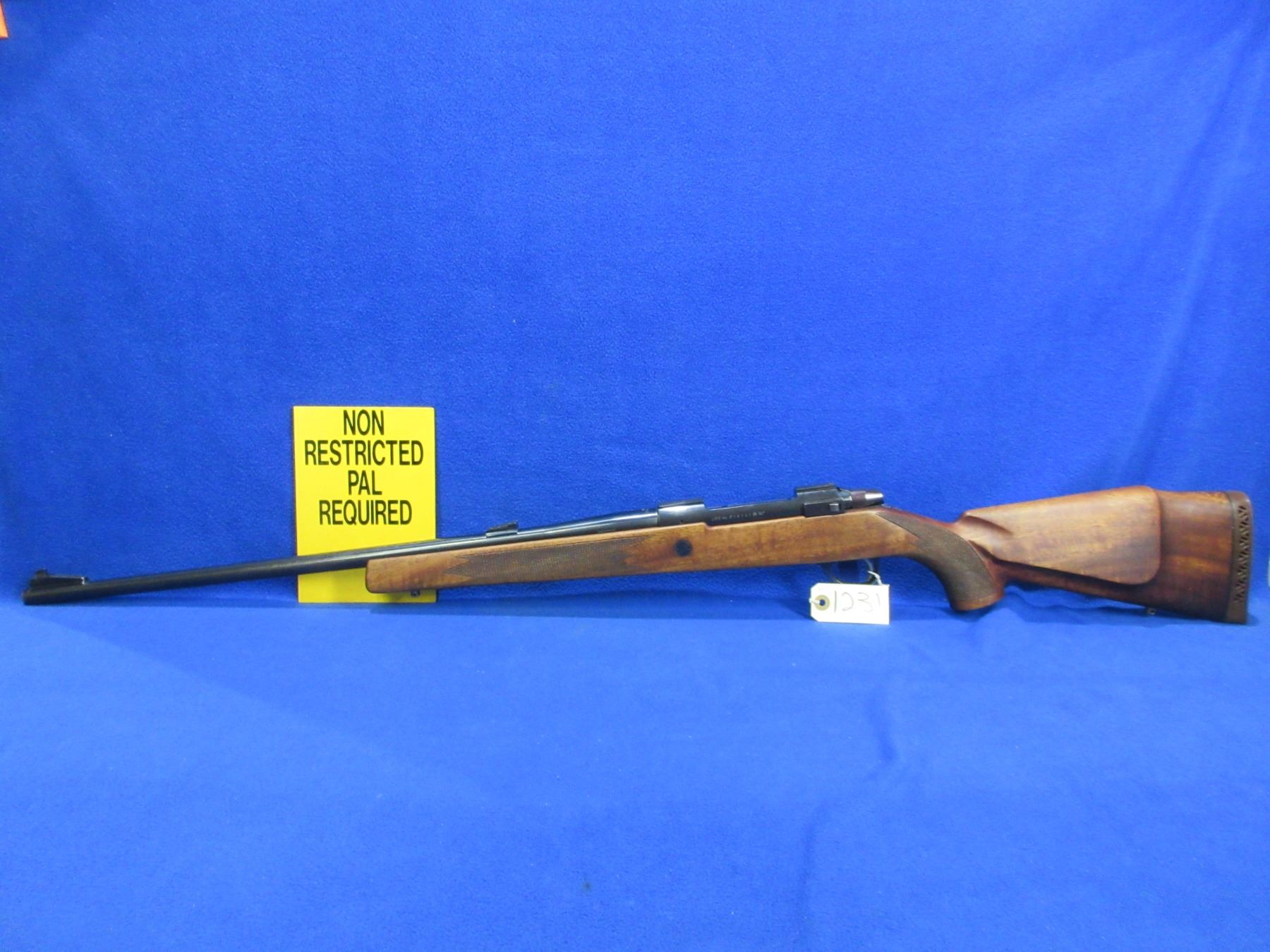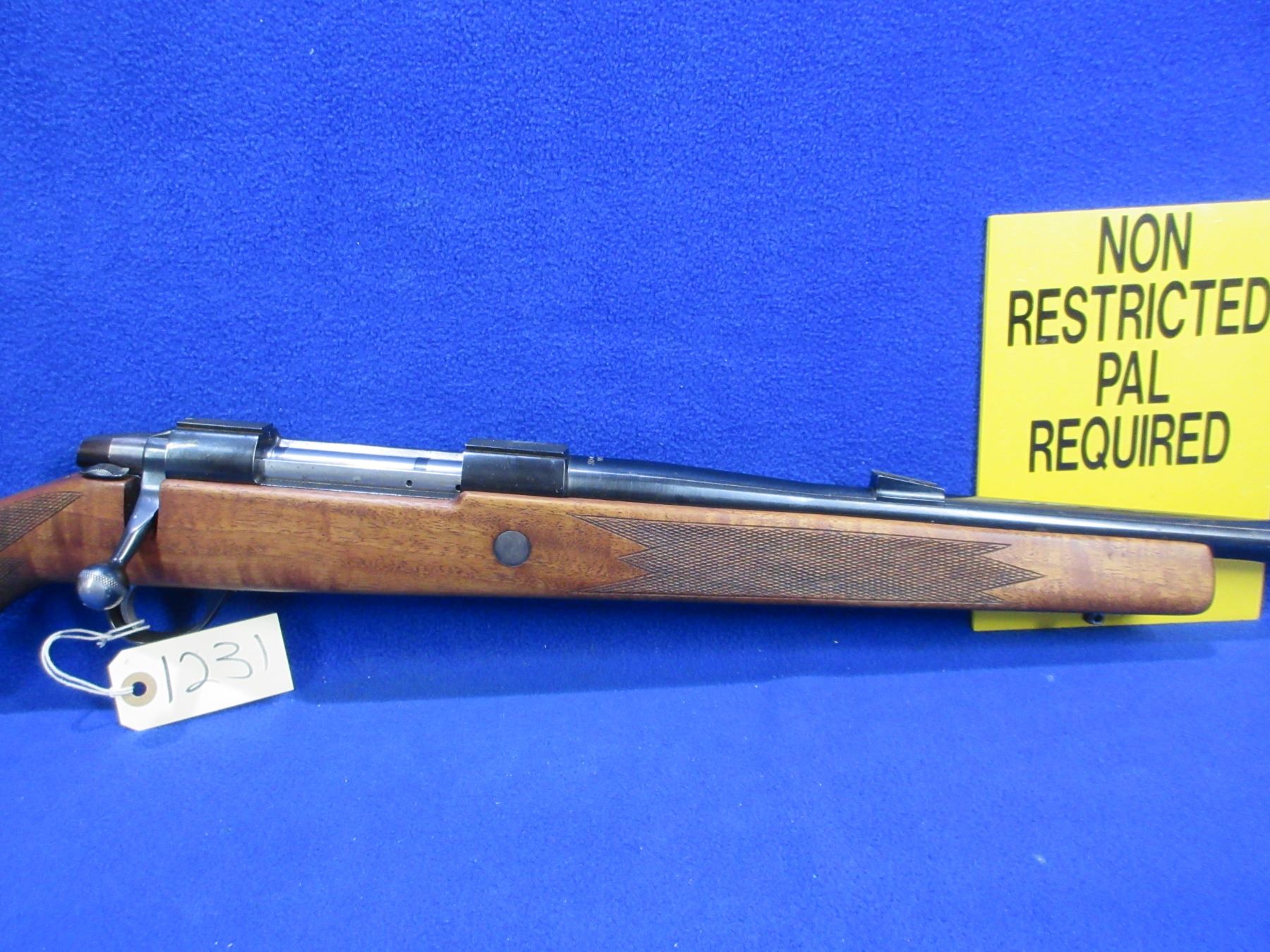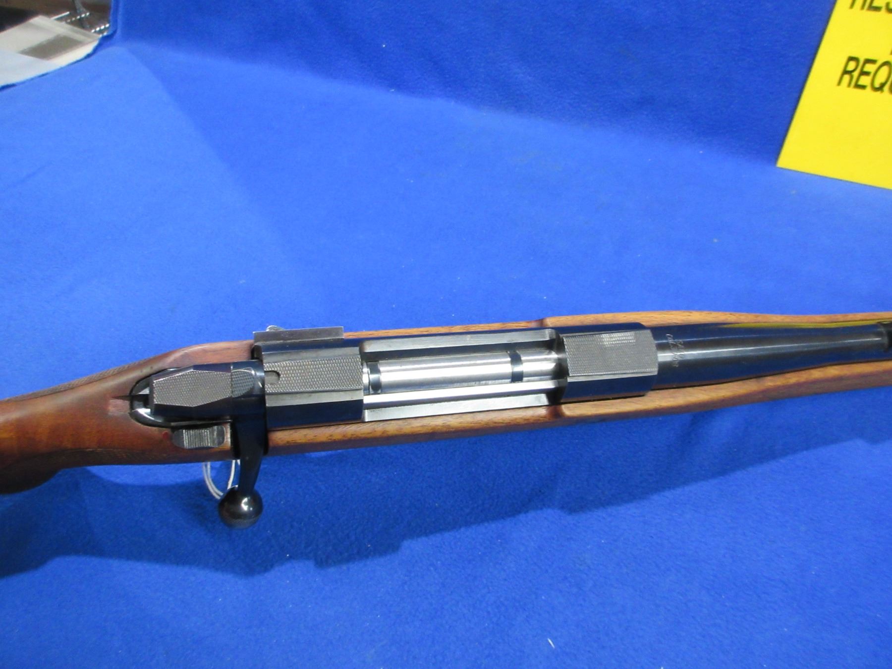 Non-Restricted - Sako Model L61R in 30-06 Sprg - This is a bolt action rifle with floorplate magazine, action appears to be in good to very good working order. Barrel is 24", rifling is good to very good, bluing is good with some wear spots, has front sight, missing rear sight but has integral Sako rail, stock is good to very good, length of pull is 13 1/2", rubber recoil pad good, comes with swivel studs. Ser # 518141