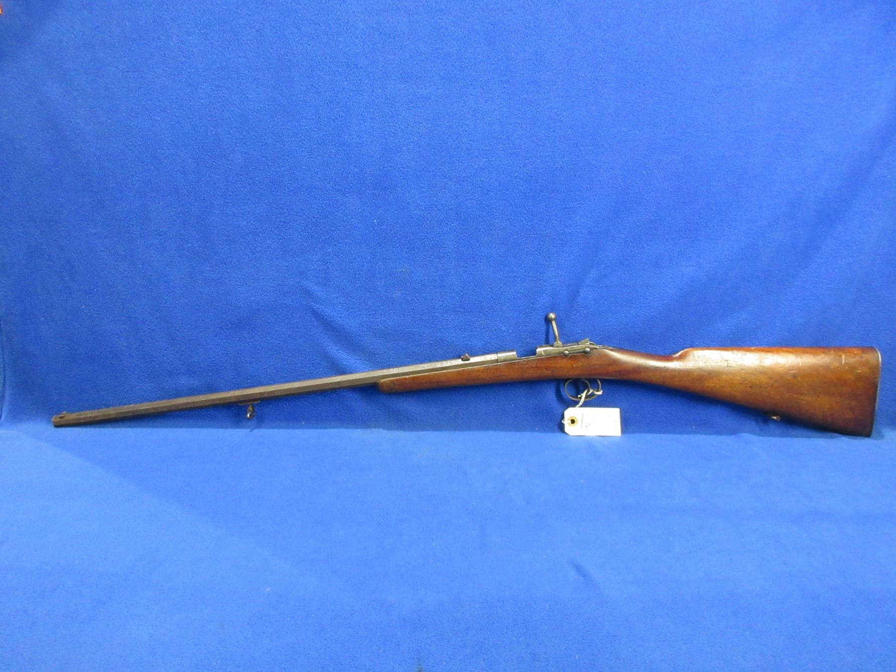Husqvarna Model 55 in 22LR - This is a deactivated single shot bolt action rifle, action is in non working order as the chamber is welded. Octagon barrel is 24", rifling is unknown, bluing is gone with rust and pitting, has both sights, stock is good with many usage marks, length of pull is 14", metal butt plate. Ser # 5346