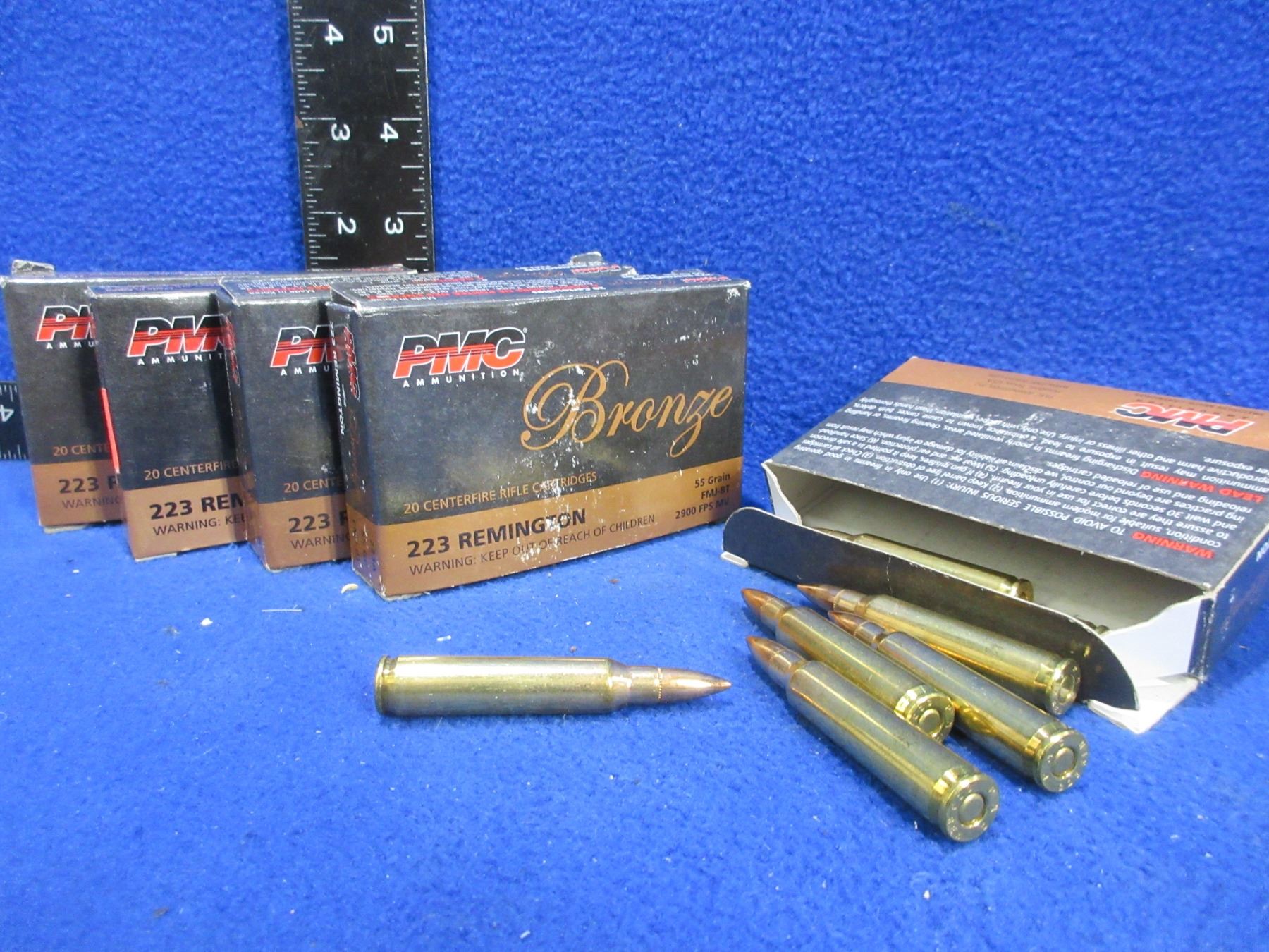 223 Rem. 55gr FMJ-BT PMC Bronze (Pick Up or Ship by UPS Only) Cartridges - 4 Boxes of 20, Box of 7