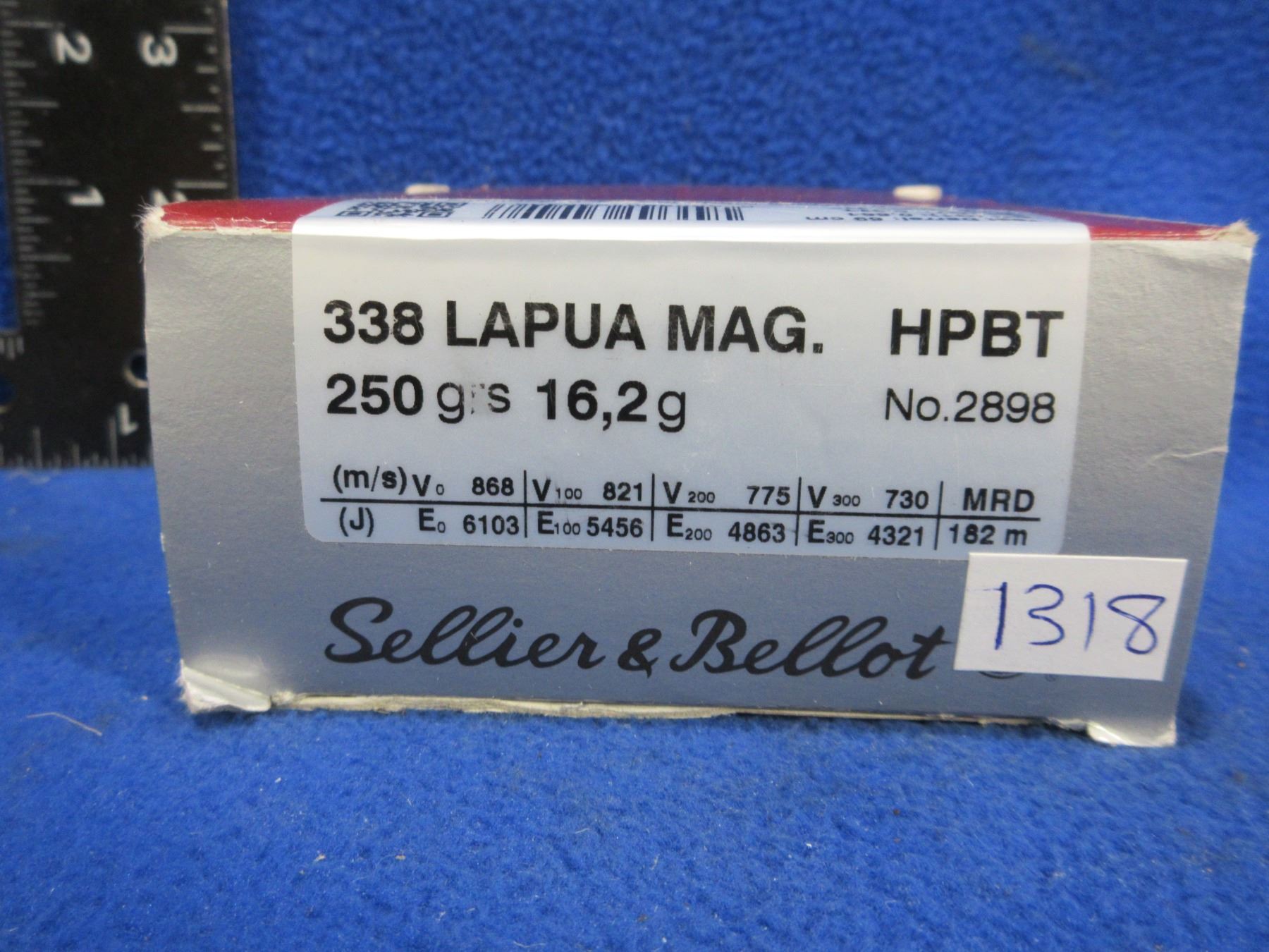 Lot 1318 338 Lapua Mag 250gr HPBT Sellier & Bellot (Pick Up or Ship by UPS Only)