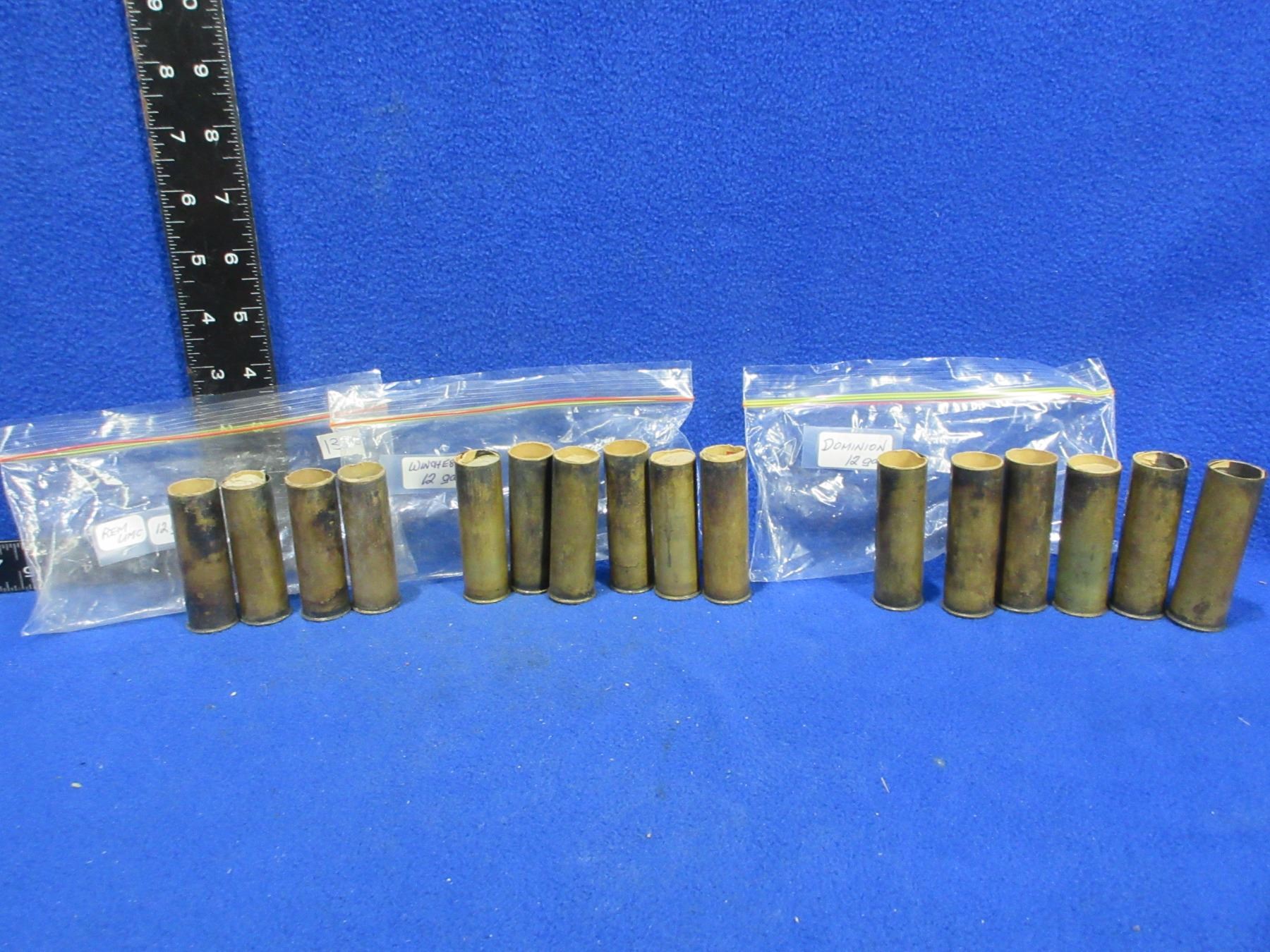 Collector Ammo - 12 Ga. 2 1/2" Brass Shotshells (Pick Up or Ship by UPS Only) - Bag of 6 (Winchester), Bag of 4 (Rem UMC), Bag of 6 (Dominion)