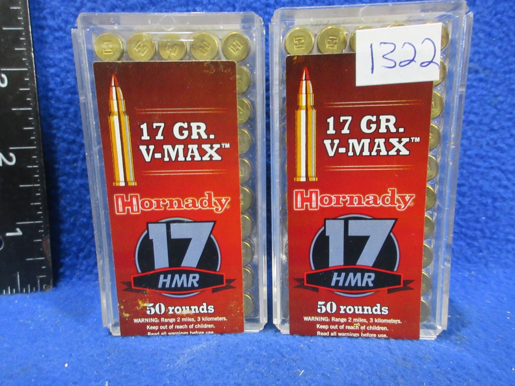 Lot 1322 17 HMR 17gr V-Max Hornady Cartridges (Pick Up or Ship by UPS Only)