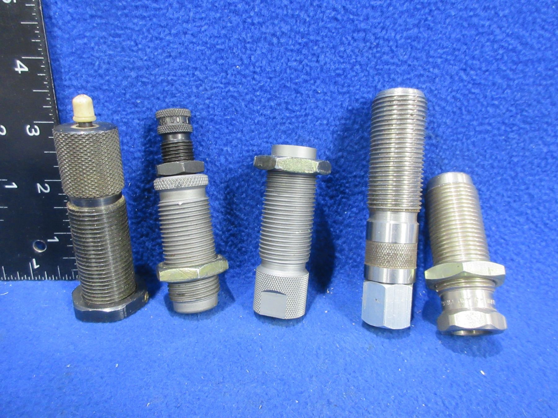 Lot of 5 Misc. Dies - As Is, Dies Maybe Missing Parts - Dillon 45 ACP Taper Crimp, Hornady 38 Cal., Lee 375 Win-C7, RCBS 45 Colt and Unknown