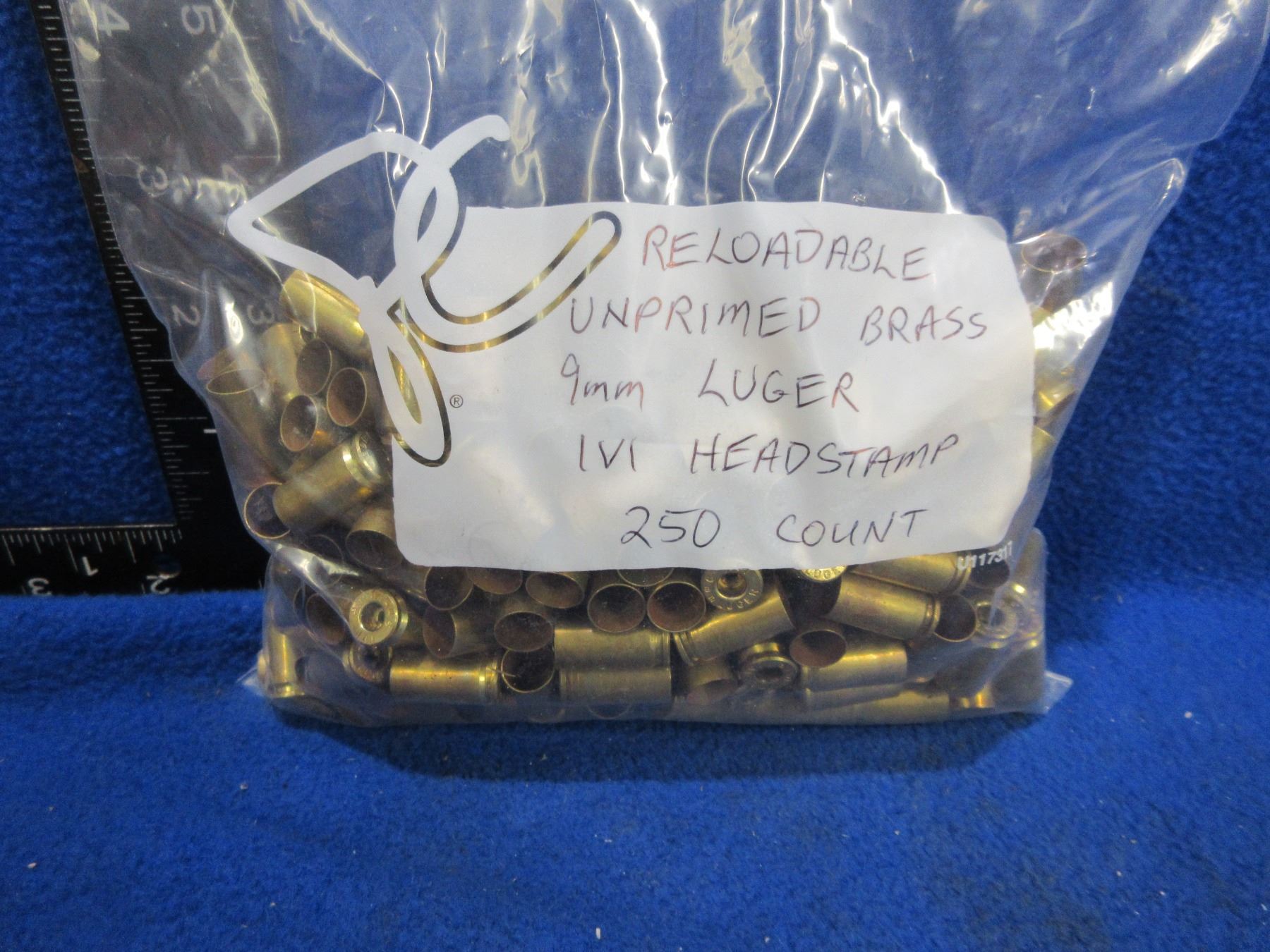 Lot 1374 Brass Only - 9MM Luger Deprimed IVI Headstamp - Bag of 250