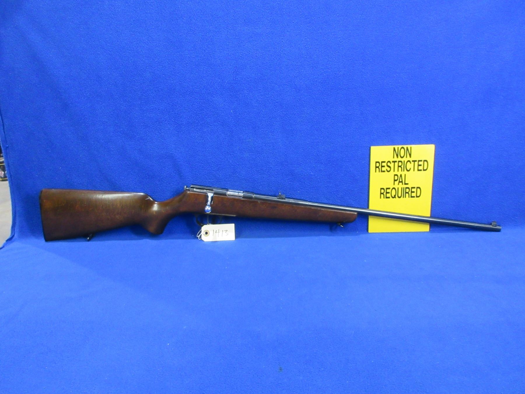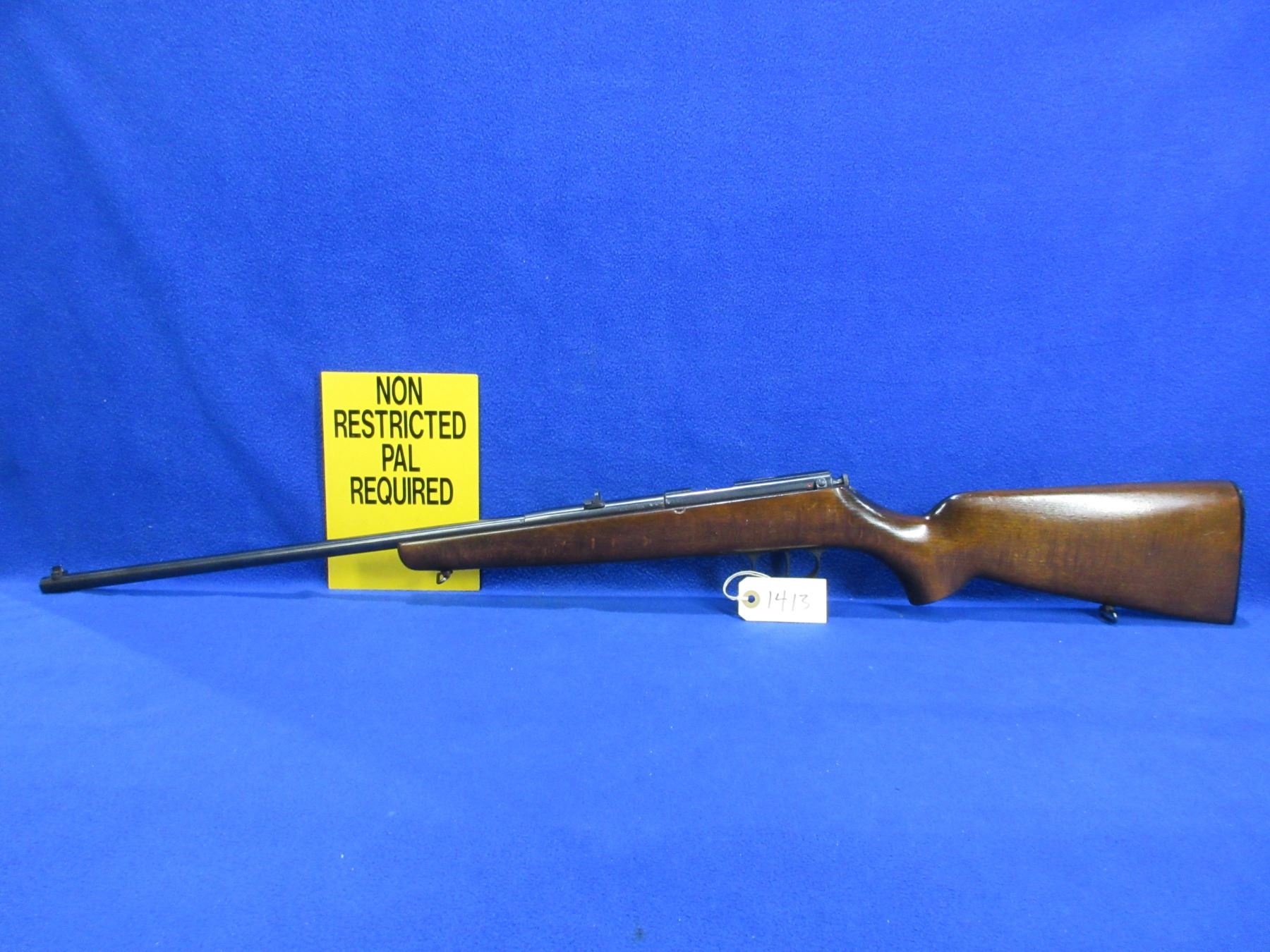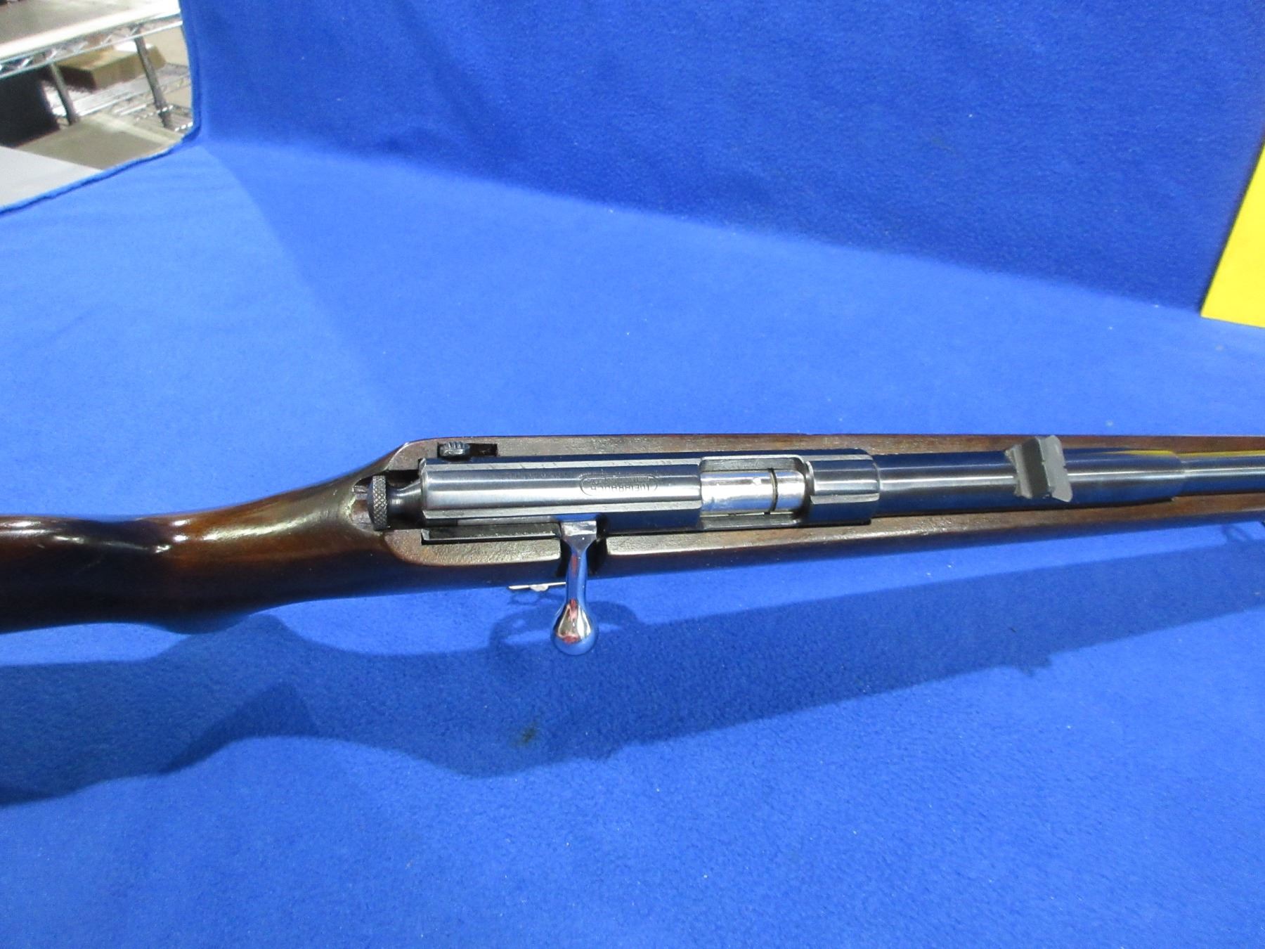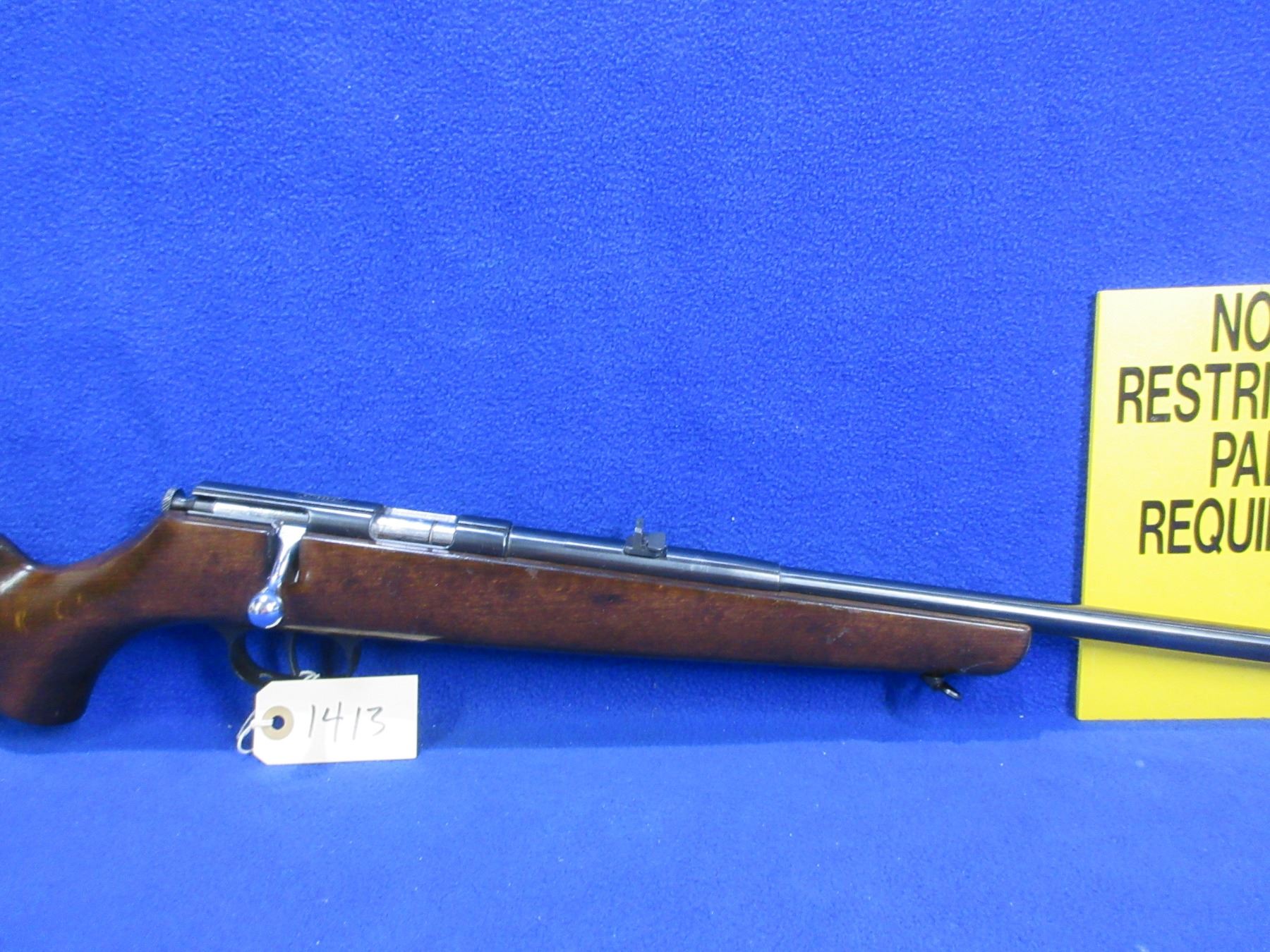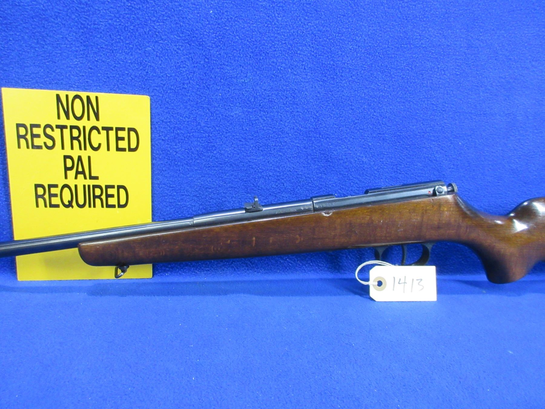 Non-Restricted - Weihrauch Single Shot in 22 LR - This is a single shot bolt action rifle, action appears to be in good to very good working order. Barrel is 21 5/8", rifling is good to very good, bluing is good to very good, has both sights, stock is good to very good with usage marks, length of pull is 14", butt plate good, comes with swivels. Ser #13360