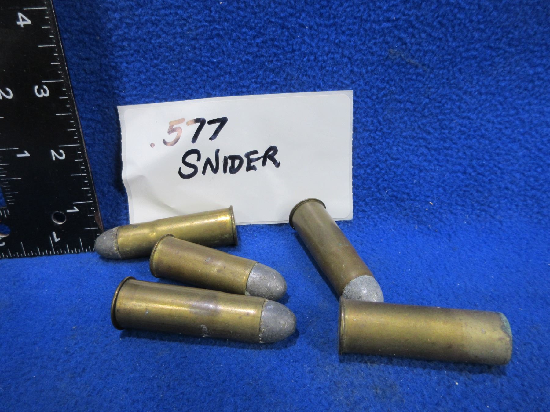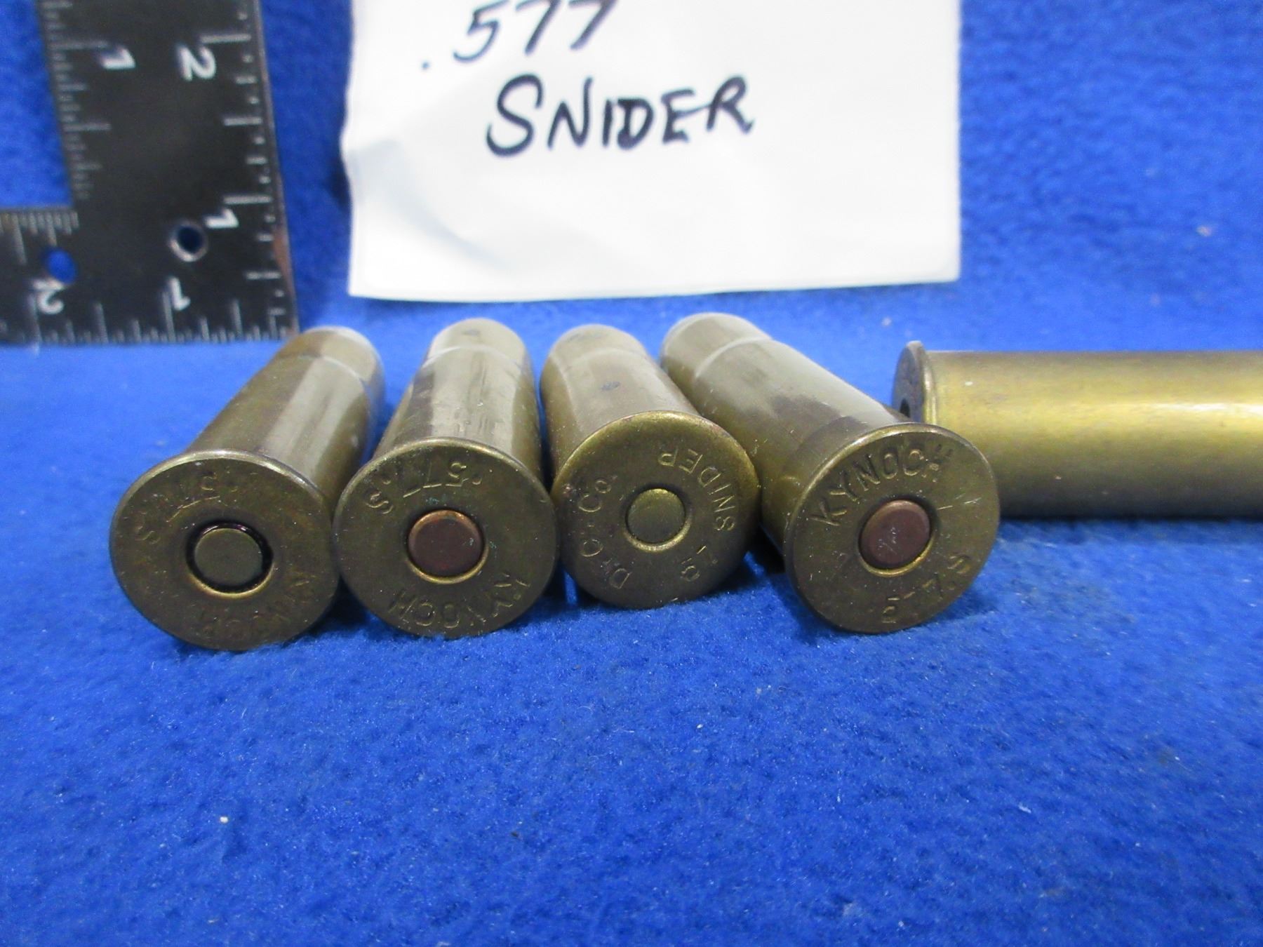 Collector Ammo - 577 Snider Cartridges (Pick Up or Ship by UPS Only) - Bag of 4 + 1 Brass - 4 Kynoch Headstamps & 1 DC Co. Headstamp