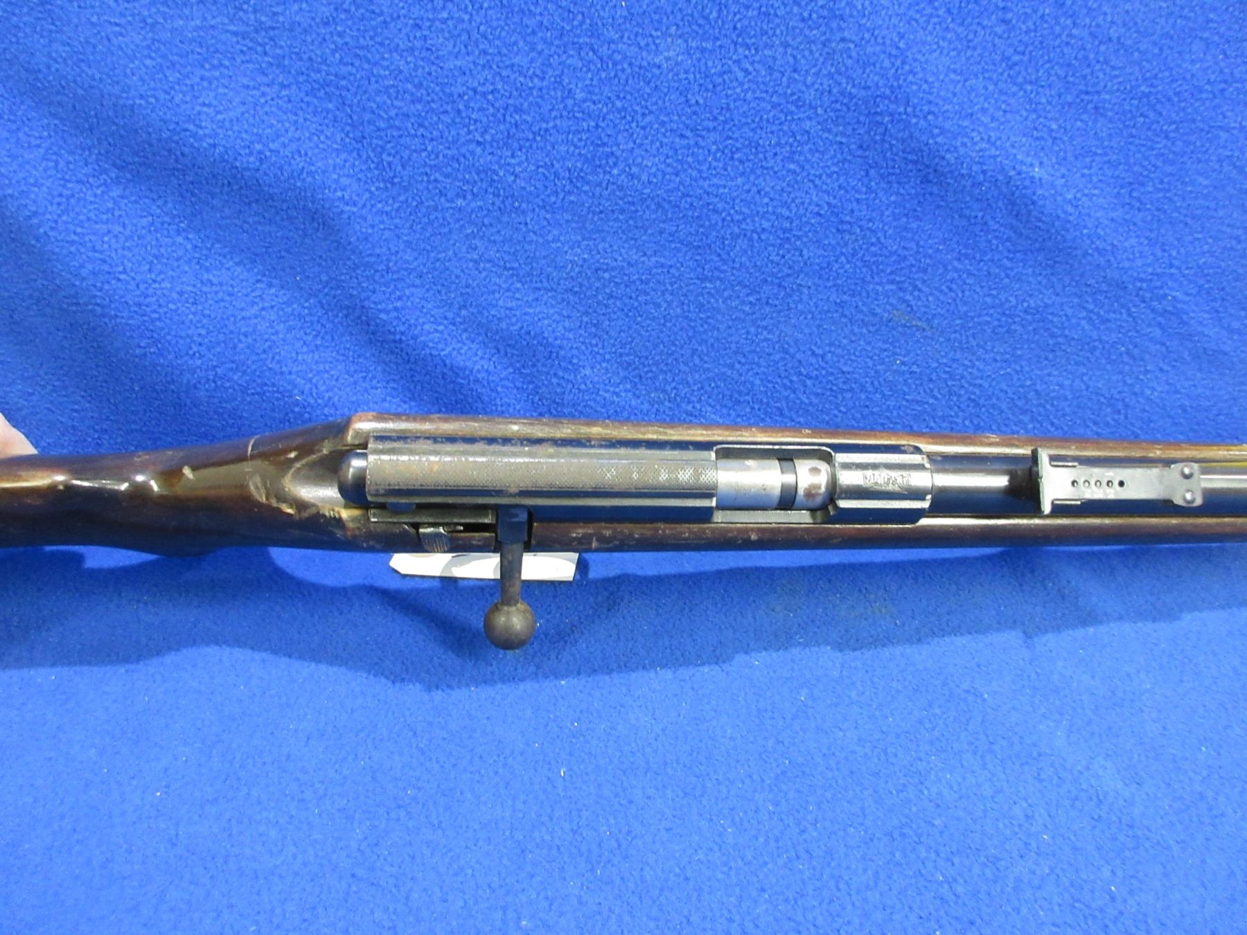 Non-Restricted - Anschutz Single Shot in 22 LR - This is a single shot bolt action rifle, action appears to be in good to very good working order. Barrel is 21 5/8", rifling is good to very good, bluing is fair to good as has rust and pitting, has both sights, stock is good with various usage marks, length of pull is 13 3/4". Ser # 155676