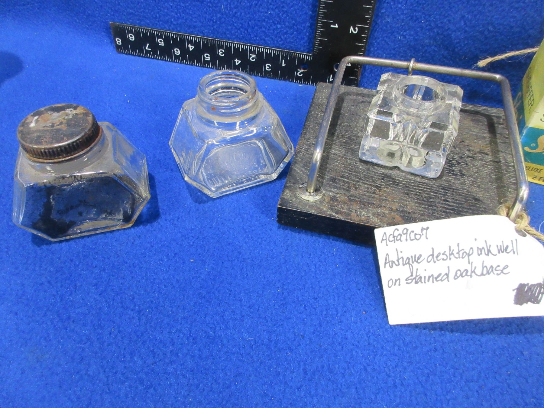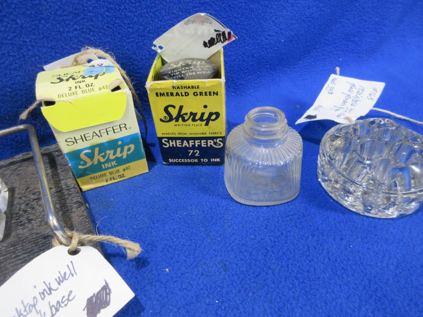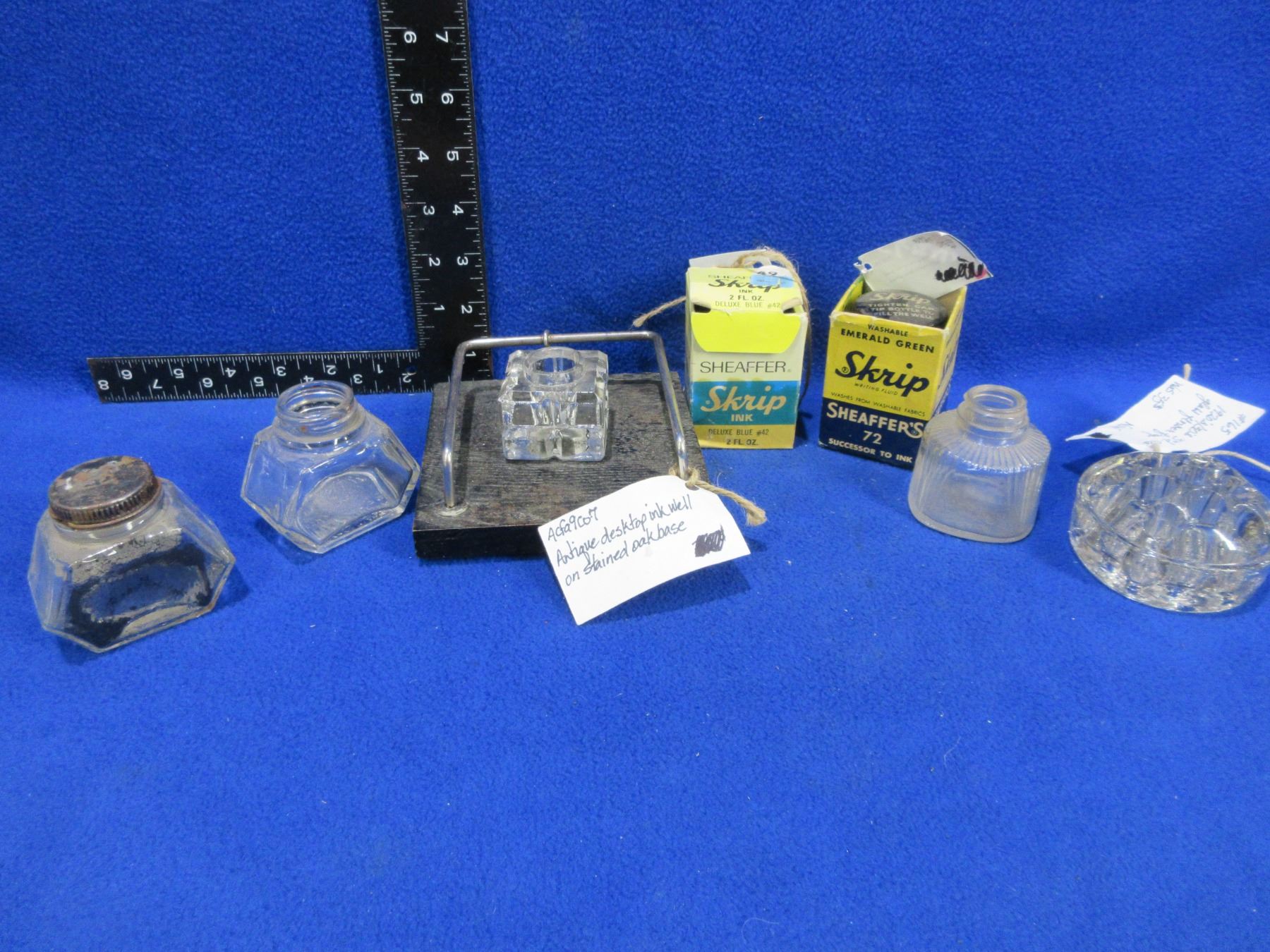 Lot 2020 Lot of Misc. Vintage Ink Wells, Ink Bottles and a Glass Flower Frog