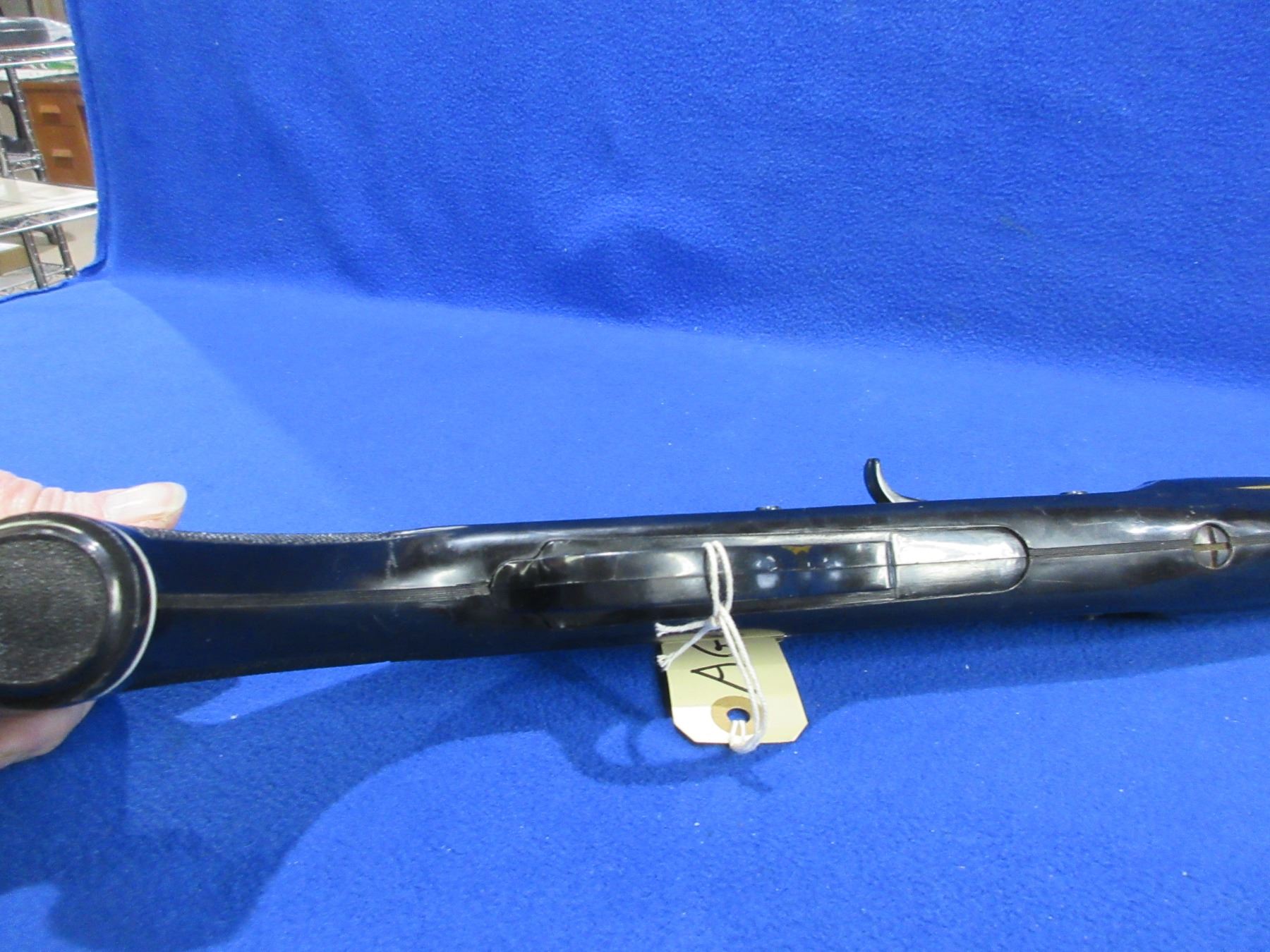 Non-Restricted - CBC Nylon 66 Replica in 22 LR - Made in Brazil, this is a semi-auto rifle with tube magazine. Action appears to be in good to very good working order. Barrel is 21", rifling is good to very good, bluing is fair to good, has both sights and dovetail, nylon stock is poor to fair as has been melted in the forearm area, length of pull is 13 3/4", butt plate good. Ser # 124516