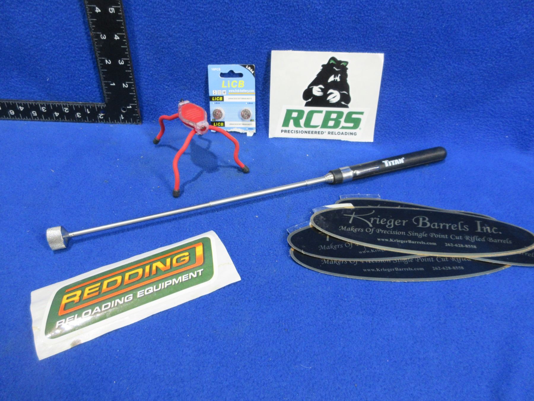 Lot of Mnisc. - Titan Extendable Magnet, Nite Ize Flashlight, LR 44 Batteries, Stickers