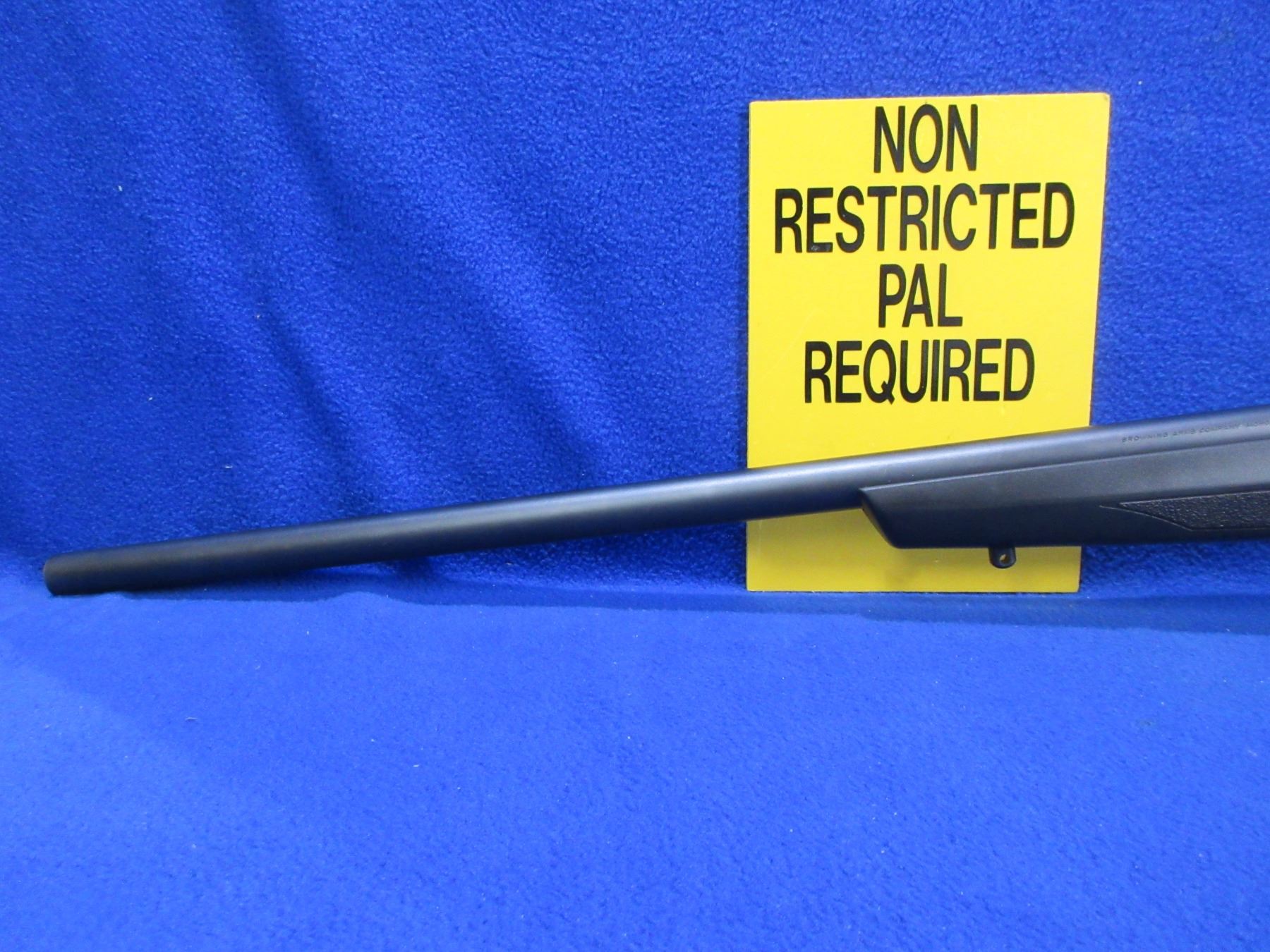 Non-Restricted - Browning Model T-Bolt in 22 Mag - This is a bolt action rifle with two rotary magazines, action appears to be in very good working order. Medium heavy barrel is 22", rifling is very good, black finish is very good, has both sights, synthetic stock is new, length of pull is 13 1/2", butt plate good, comes with swivel studs. Ser # 03613MN253