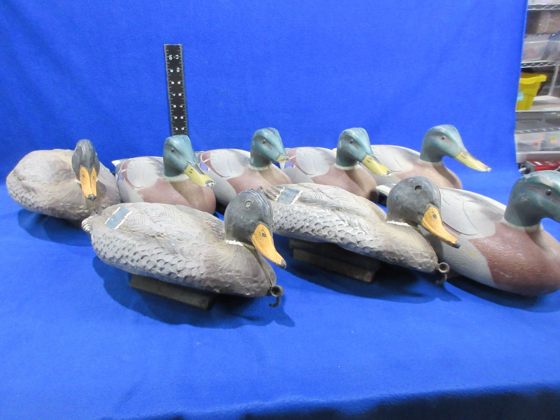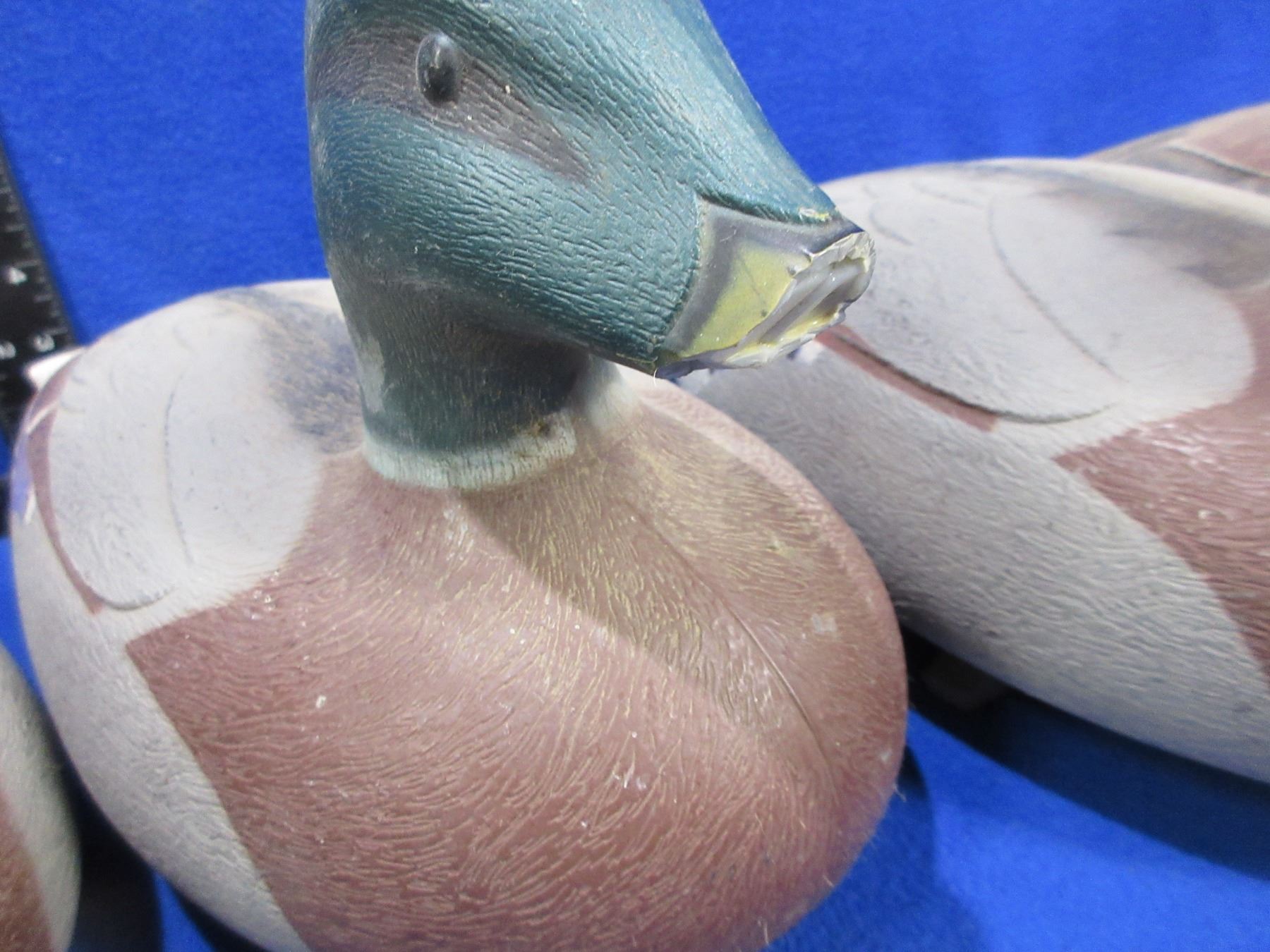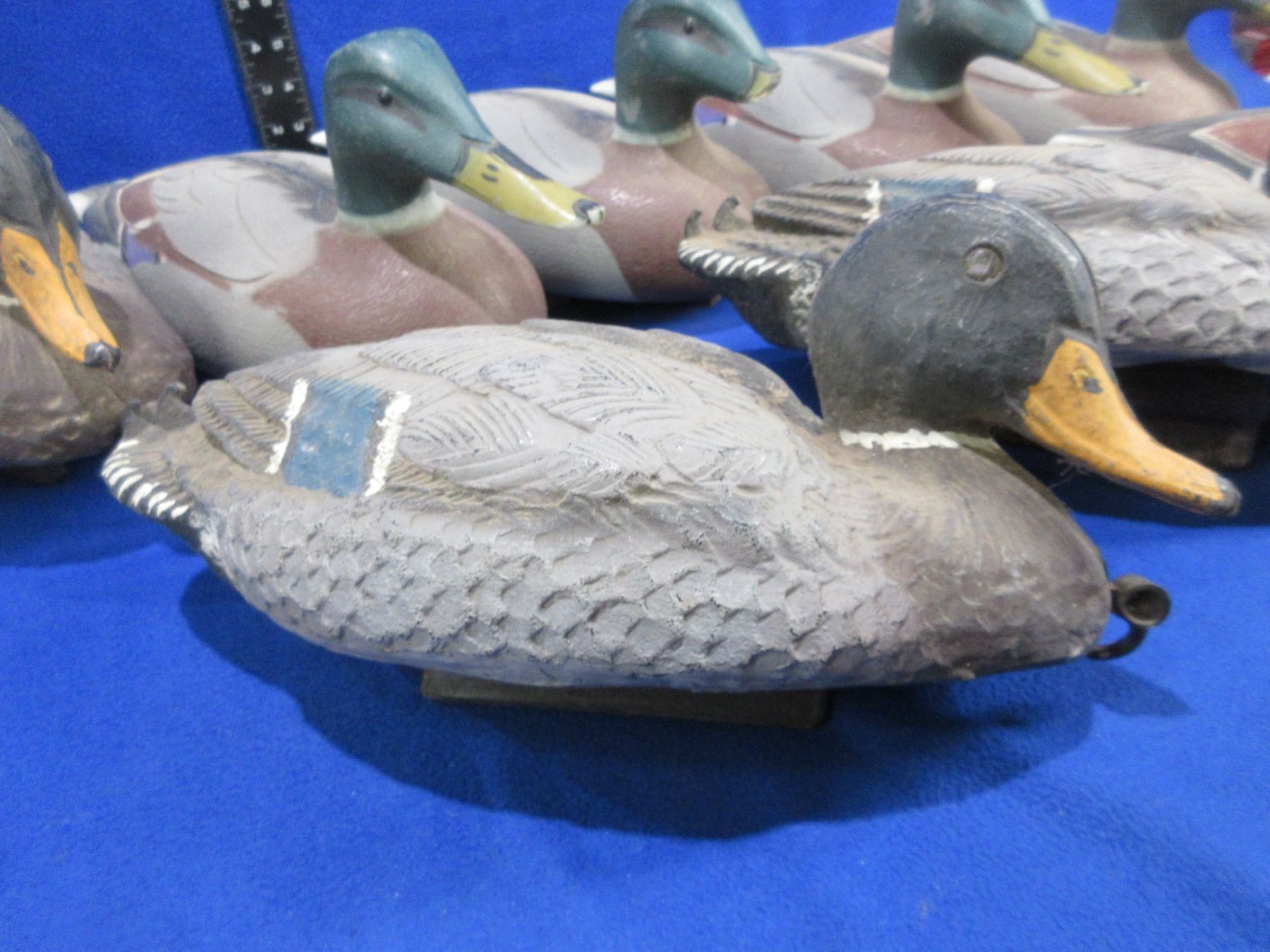 8 Vintage Plastic Duck Decoys - 1 has a damaged beak