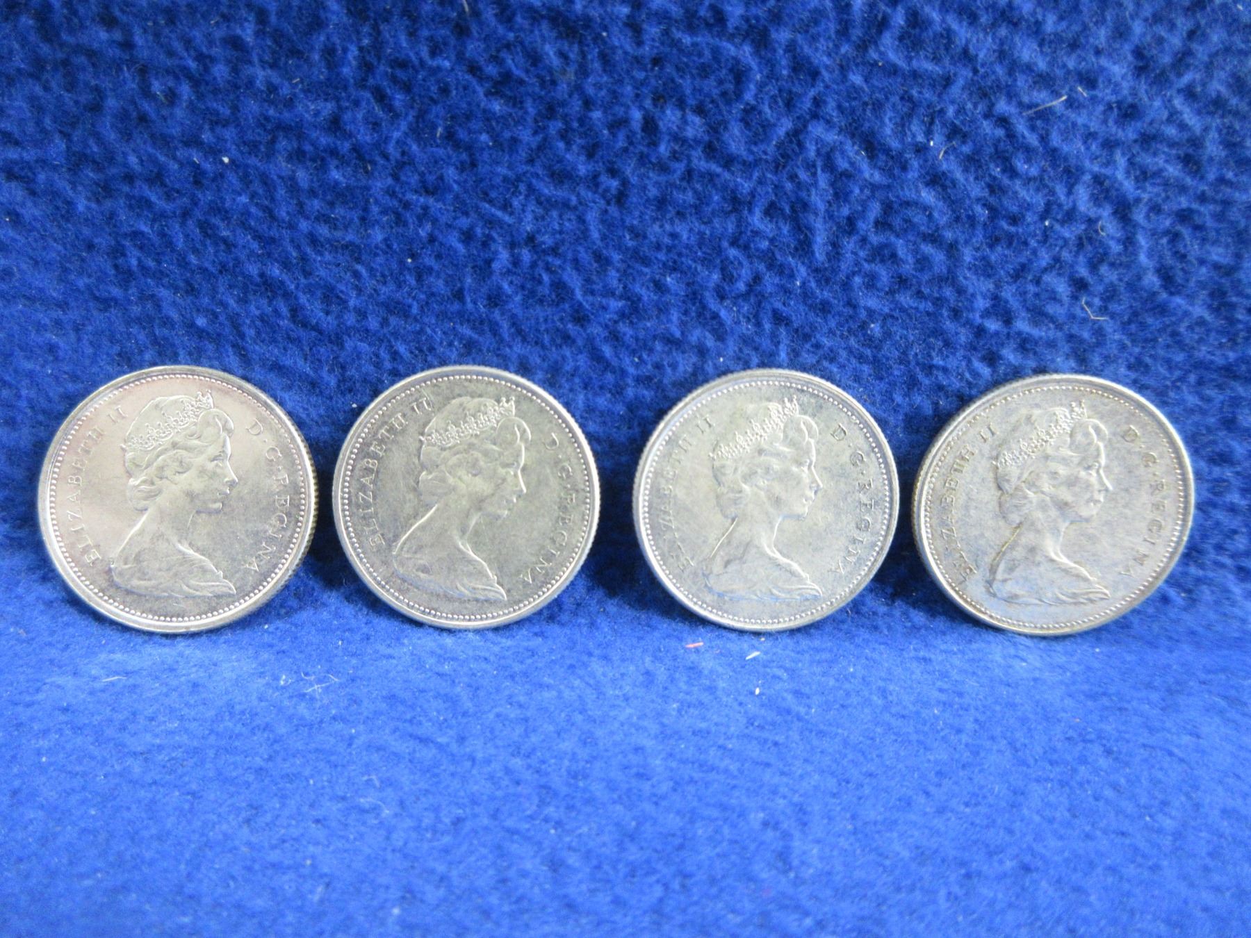 4 - 1967 Canadian 25 Cent Coins - .800 Silver