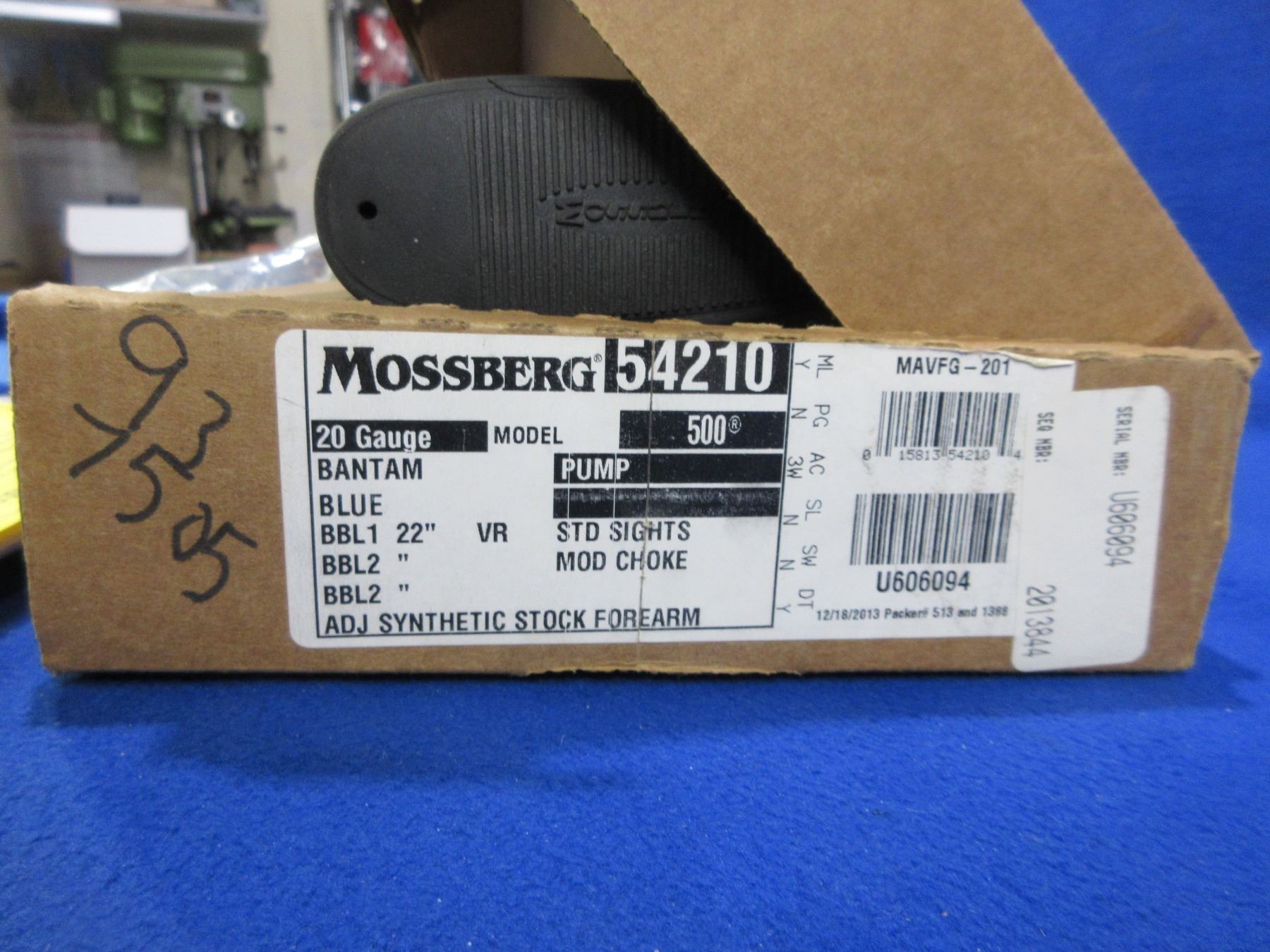 NEW - Non-Restricted - Mossberg Super Bantam in 20 Ga. 2 3/4" - This is a NEW pump action shotgun with tube magazine and adjustable synthetic stock. Barrel is 22", length of pull is 12"-13", comes with extra recoil pad, 2 extra chokes, padlock, manual. Ser #U606094