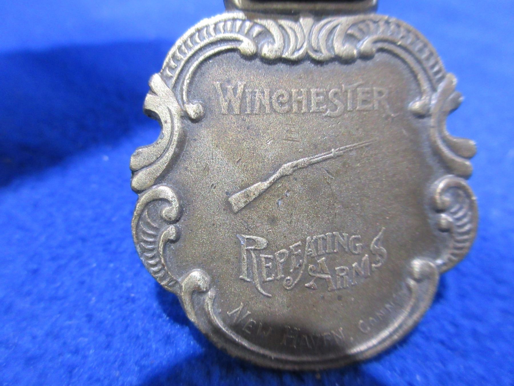 Lot 2223 Winchester Repeating Arms Pocket Watch Fob with Leather Strap - Marked WF-10