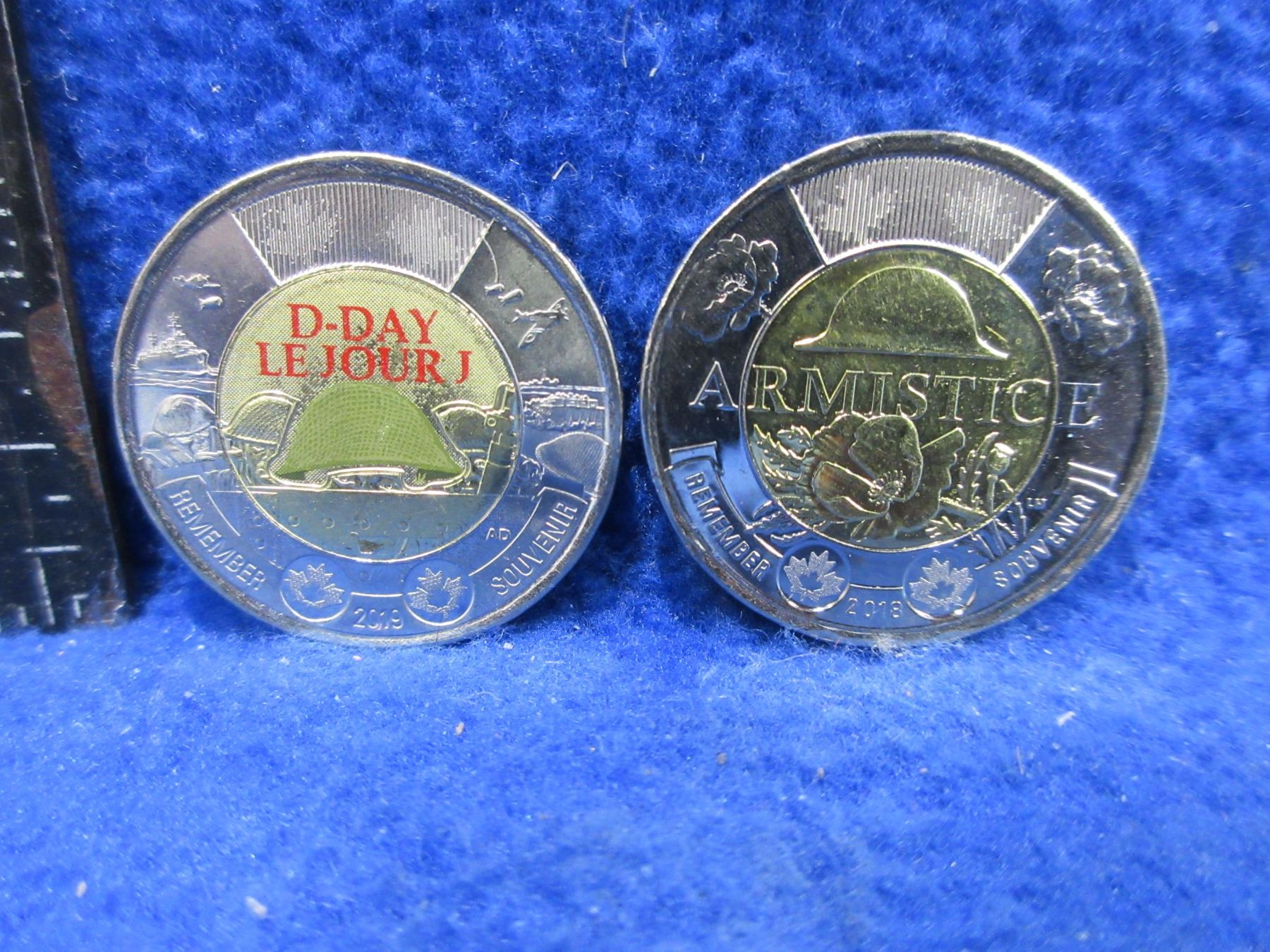 2 - Canada 2 Dollar Coins - 2018 Armistice & 2019 D-Day