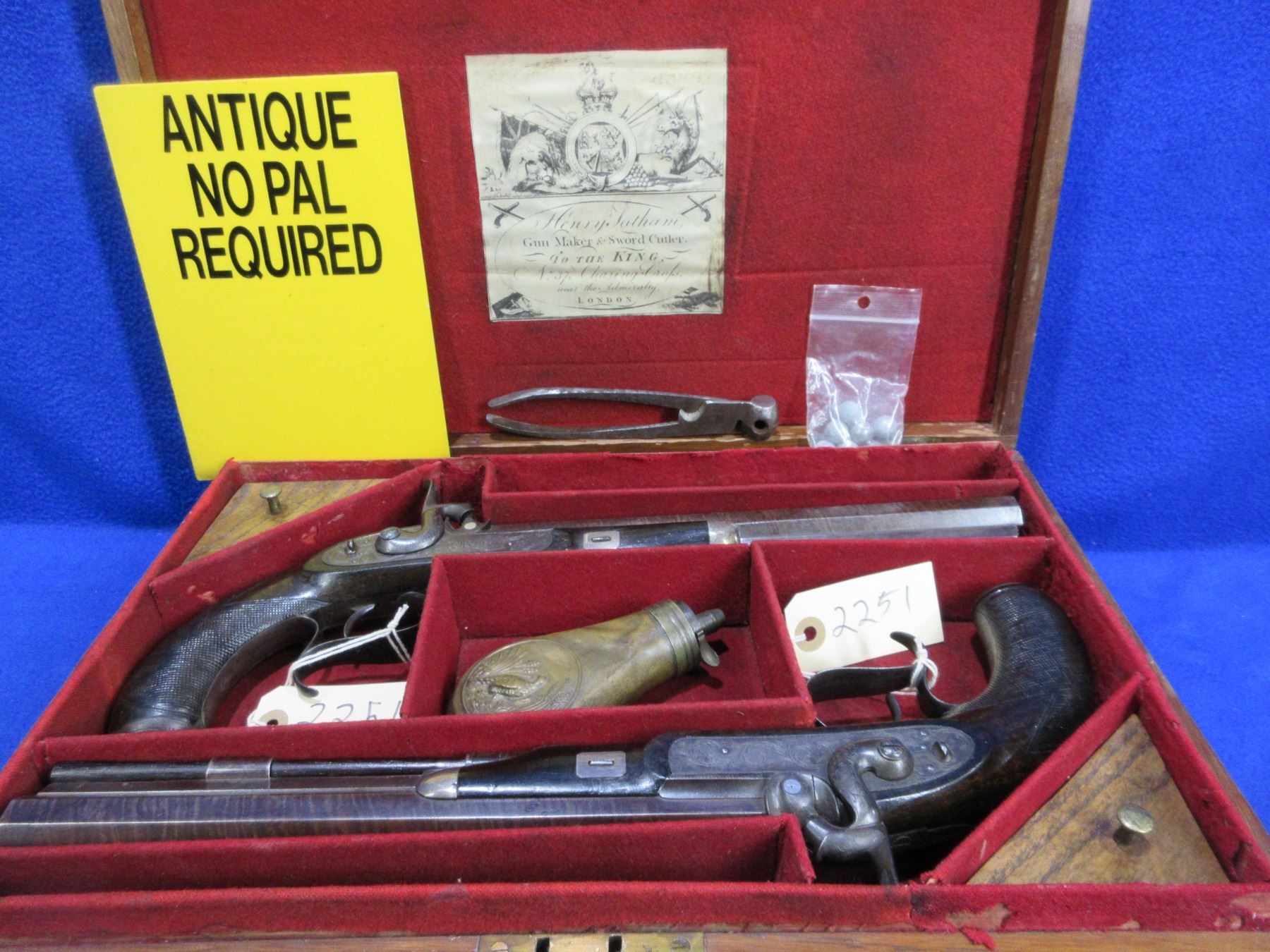 Lot 2251 Antique - No PAL Required - Henry Tatham Cap & Ball Pistol set in 50 Cal.
