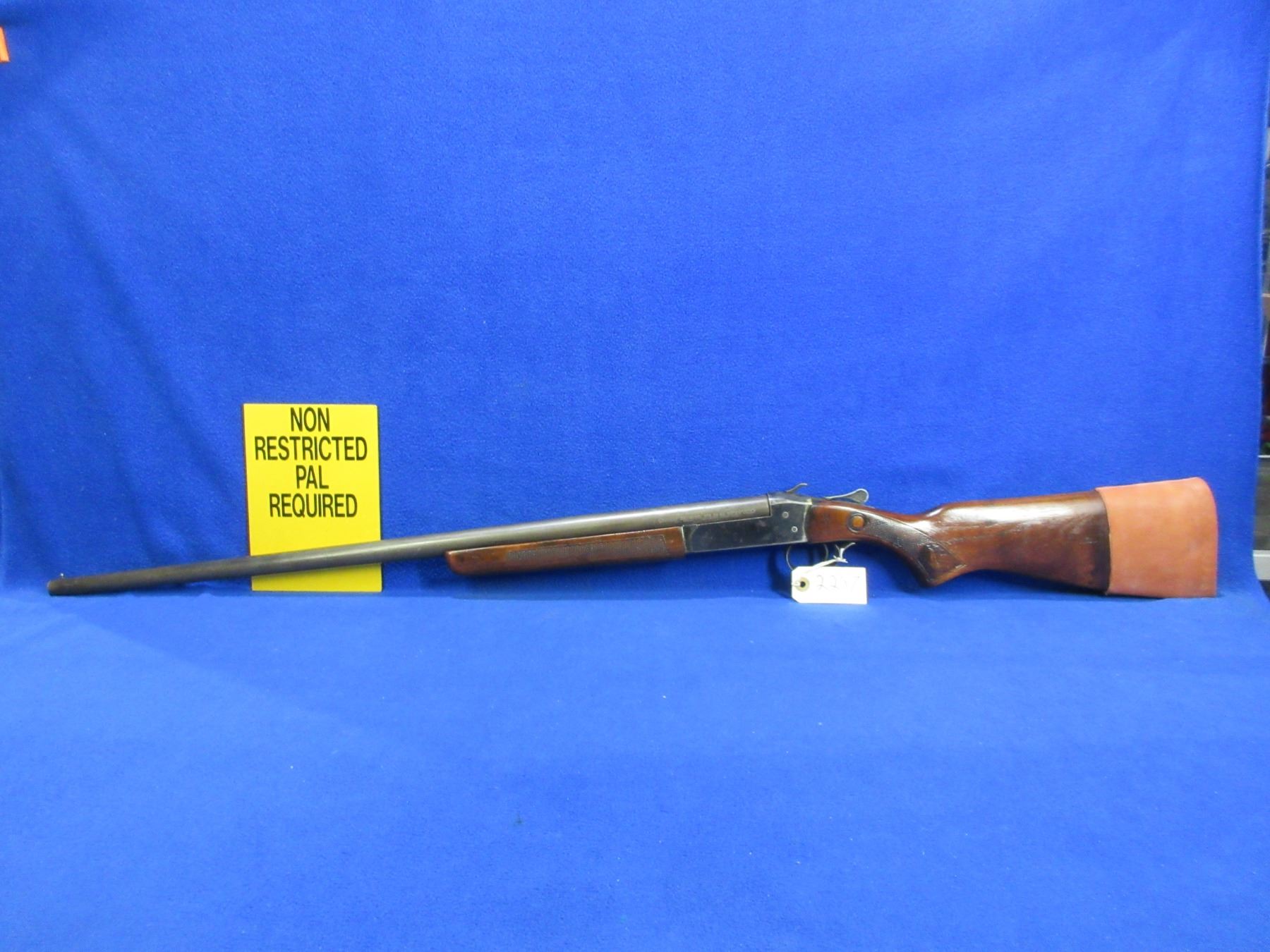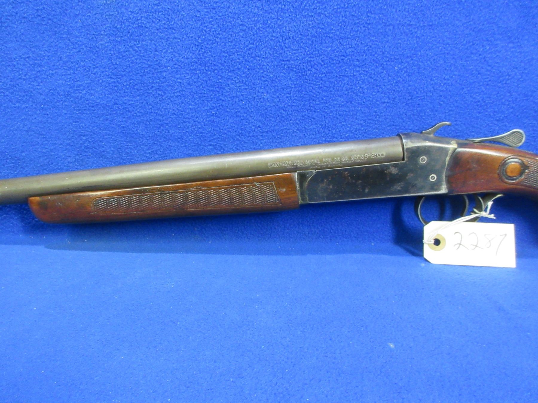 Non-Restricted - Winchester Model 370 in 20 Ga 3" - This is a tip up single shot shotgun with choke, action is tight and appears to be in good working order. Barrel is 28", bore is good to very good, bluing is mostly gone, has bead front sight, stock is fair to good as has small cracks by upper and lower tang, forearm is good to very good, length of pull is 14 1/2", comes with older slip on rubber recoil pad. Ser # C343383