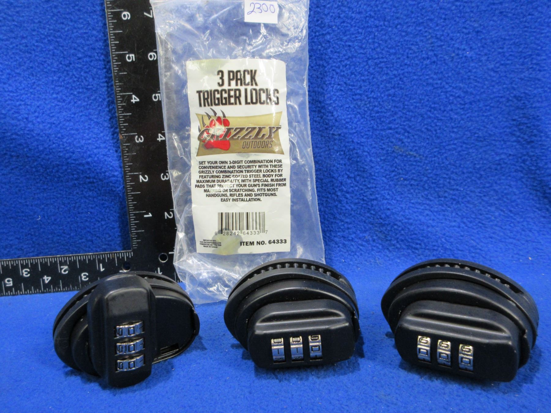 Lot 2300 Grizzly Combination Trigger Locks - 3 Pack - New Old Stock