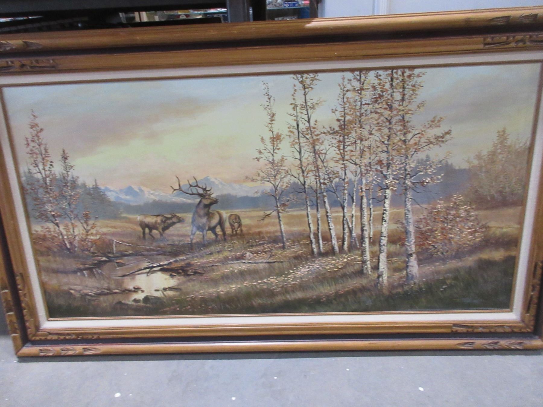 Framed Painting by Jerry Doell - Elk and Trees - 56" x 32 1/4"