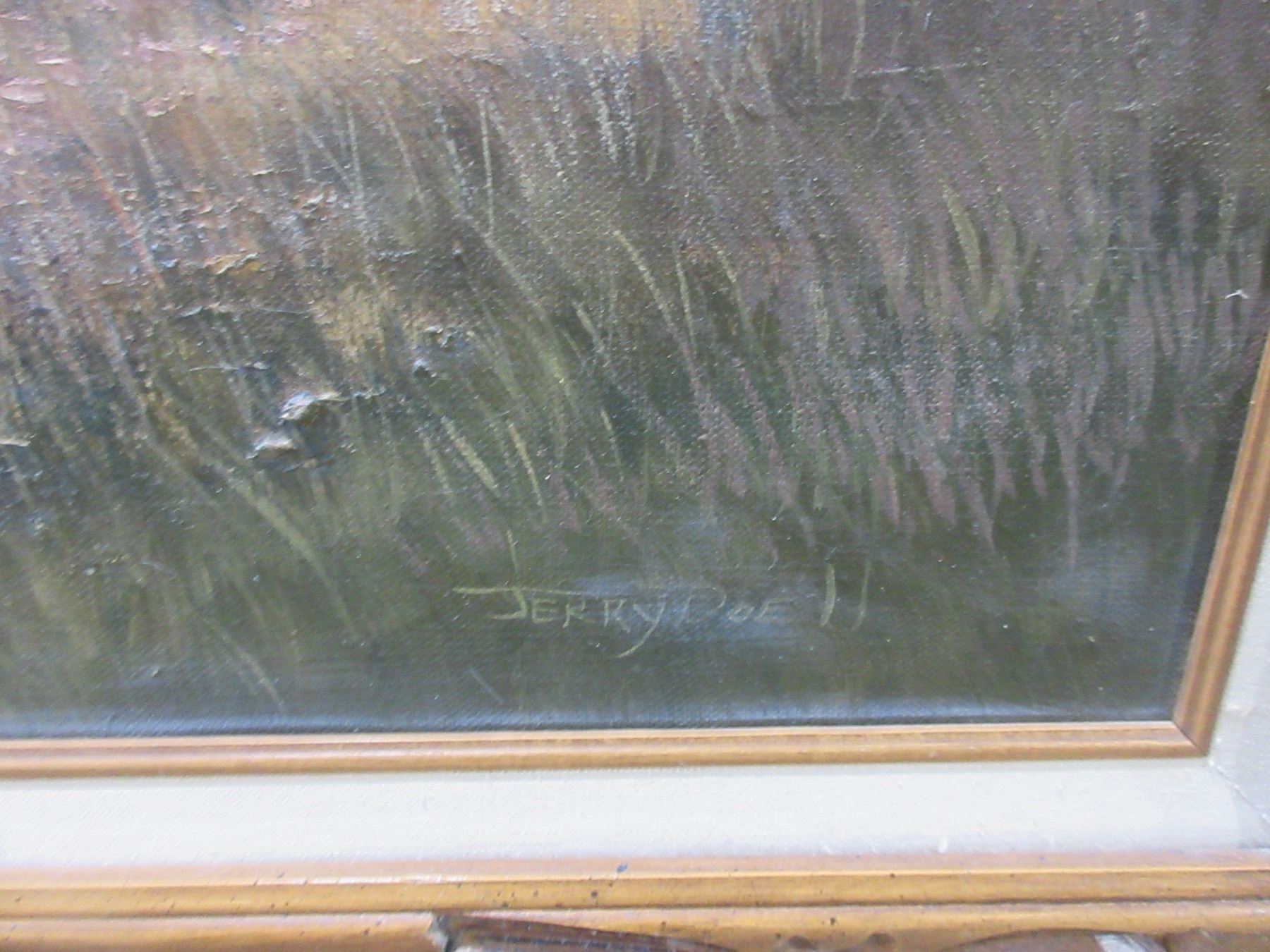 Lot 2302 Framed Painting by Jerry Doell - Elk and Trees - 56" x 32 1/4"