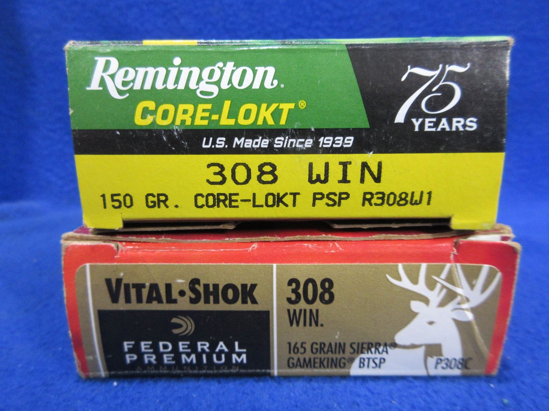 308 Win. Remington & Federal Cartridges (Pick Up or Ship by UPS Only) - Box of 20 (Federal 165gr BTSP), Box of 18 + 2 Brass (Remington 150gr Core-Lokt PSP)