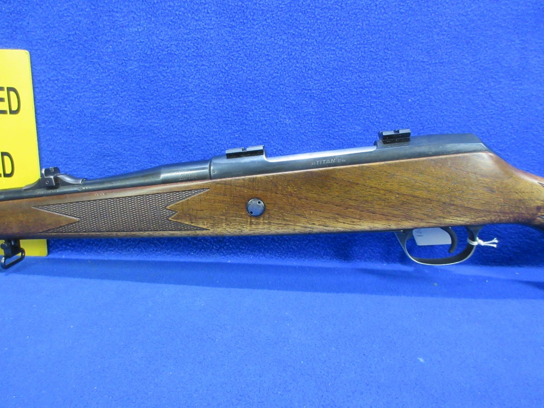 Non-Restricted - Voere Model Titan II in 30-06 Sprg- This is a bolt action rifle with floorplate magazine, action appears to be in good to very good working order. Barrel is 23 1/2", rifling is good to very good, bluing is good to very good, has both sights and Weaver style bases, stock is good to very good but left side by action has two small holes, length of pull is 14", butt plate good, comes with swivels. Ser # 808810