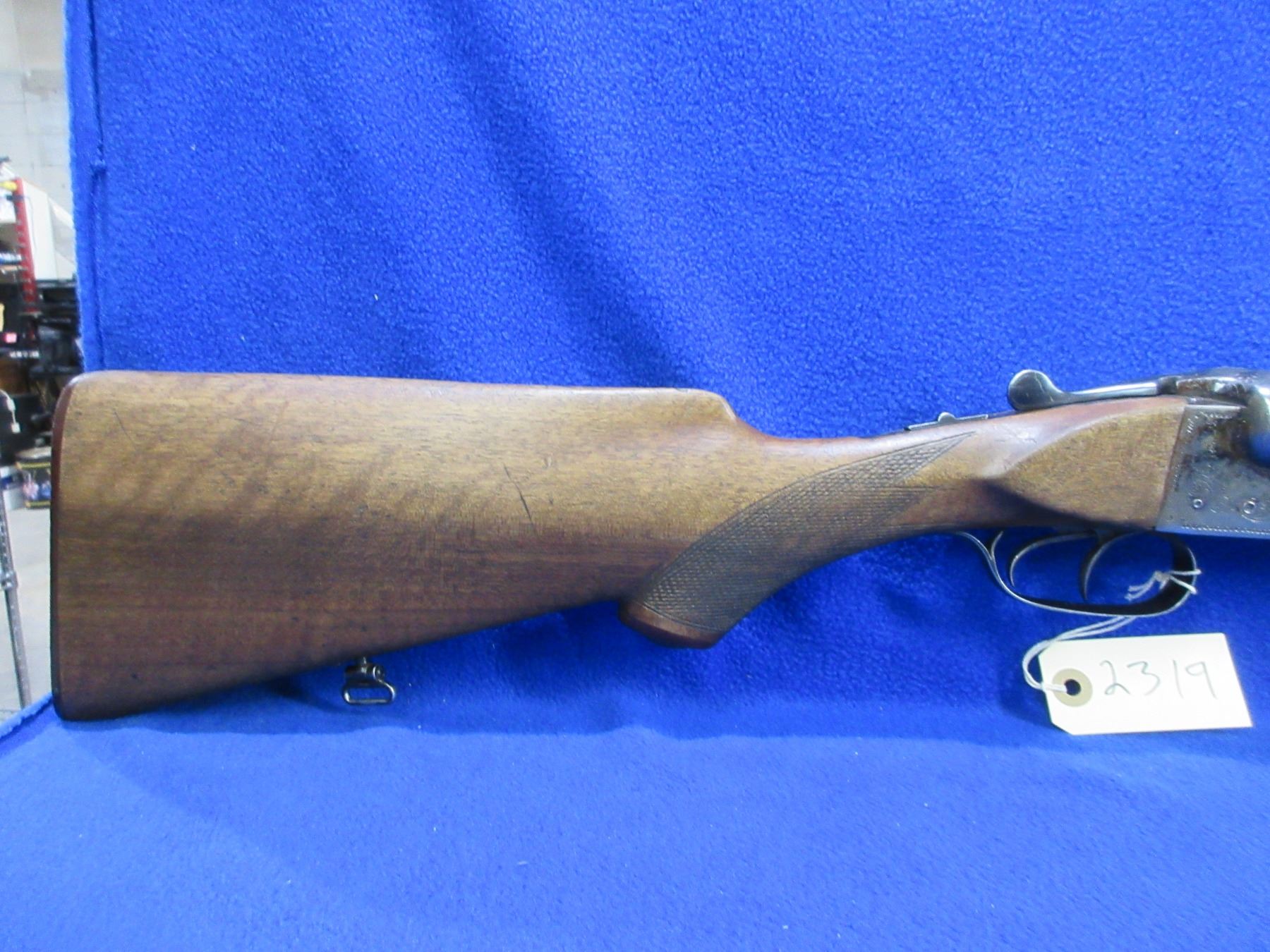 Non-Restricted - Baikal SXS in 12 Ga. 2 3/4" - This is a tip up SXS shotgun, action is tight and appears to be in good to very good working order. Barrels are 28 1/2", bores are good to very good, bluing is good to very good, has fiber optic front sight, stock is good to very good but has markings on the bottom by wrist cap, forearm is good to very good, length of pull is 14 1/2", butt plate good, comes with swivels. Ser # H3655