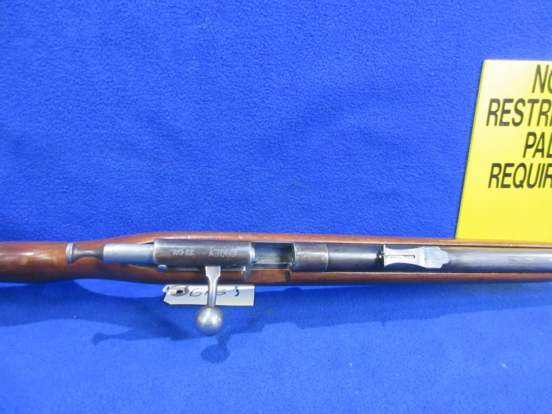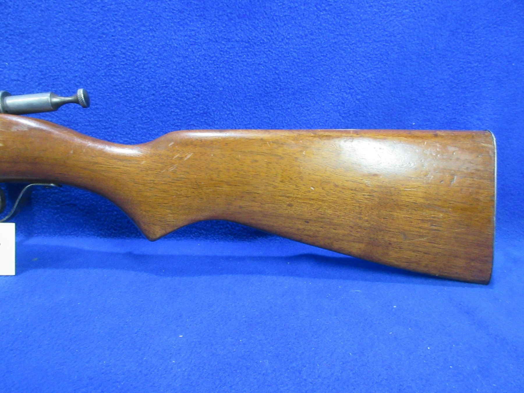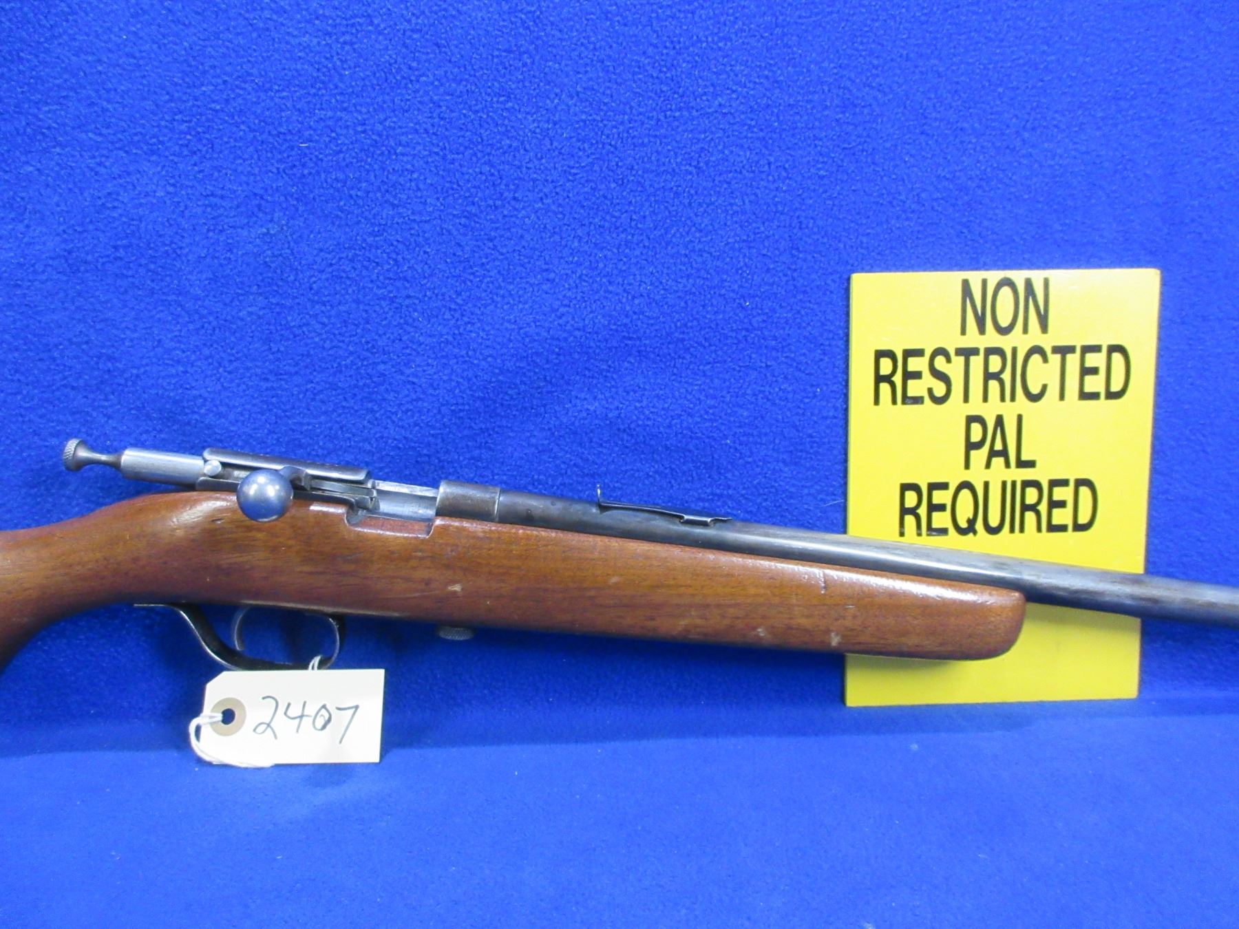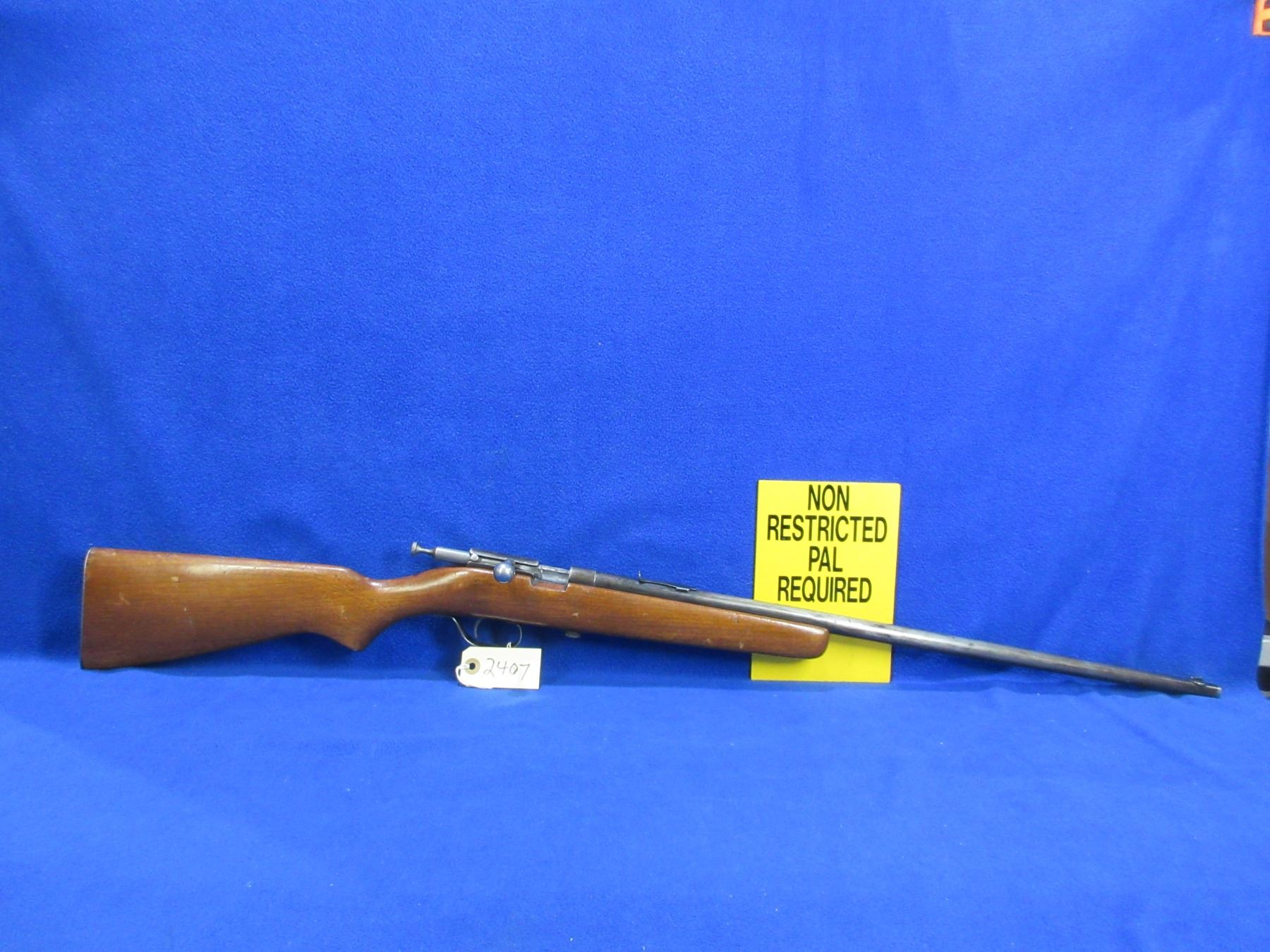 Non-Restricted - Cooey Model 39? Single Shot in 22 Cal. - This is a single shot bolt action rifle, action appears to be in good to very good working order. Barrel is 24", rifling is good to very good, bluing is mostly grey, has both sights but rear sight is missing the ramp, stock is good to very good with usage marks, length of pull is 13 3/8", metal butt plate good. Ser # None
