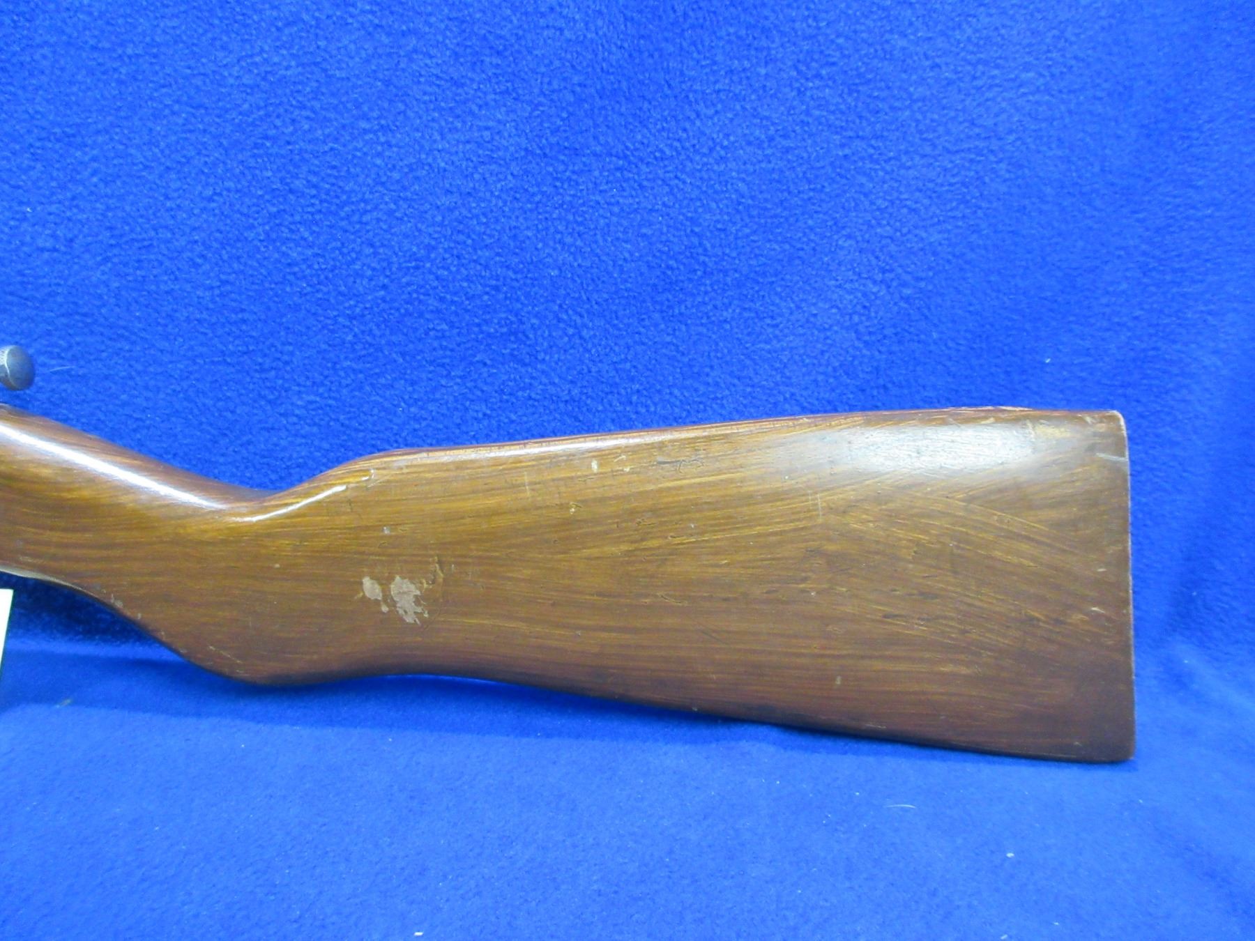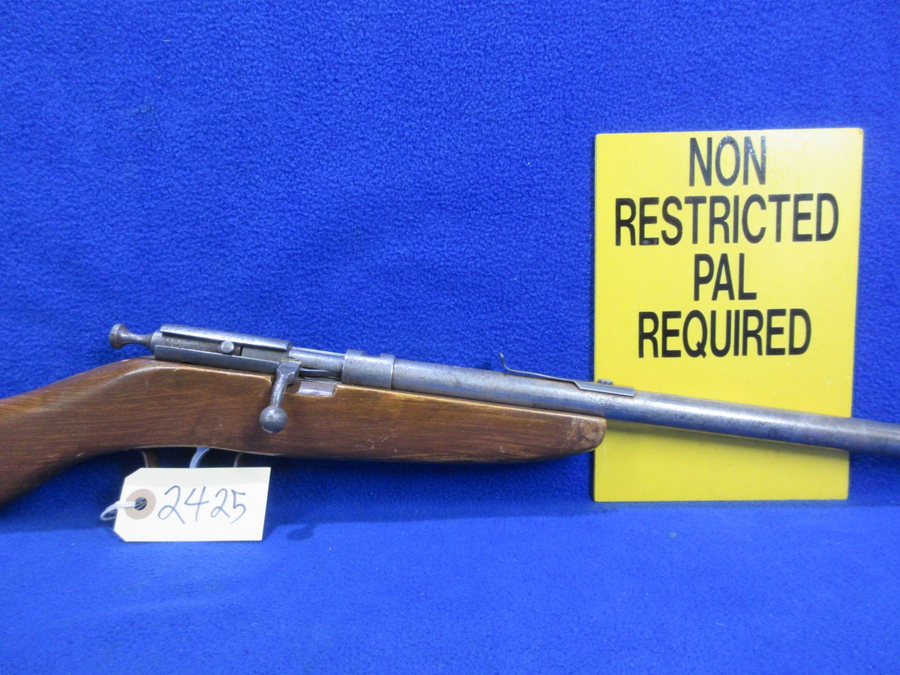Non-Restricted - Ranger by Cooey in 22 LR - This is a single shot bolt action rifle, action appears to be in good to very good working order. Barrel is 18", rifling is fair to good, bluing is gone, has both sights but rear sight is missing the ramp, stock appears homemade and is good with usage marks, length of pull is 13 1/2". Ser # None
